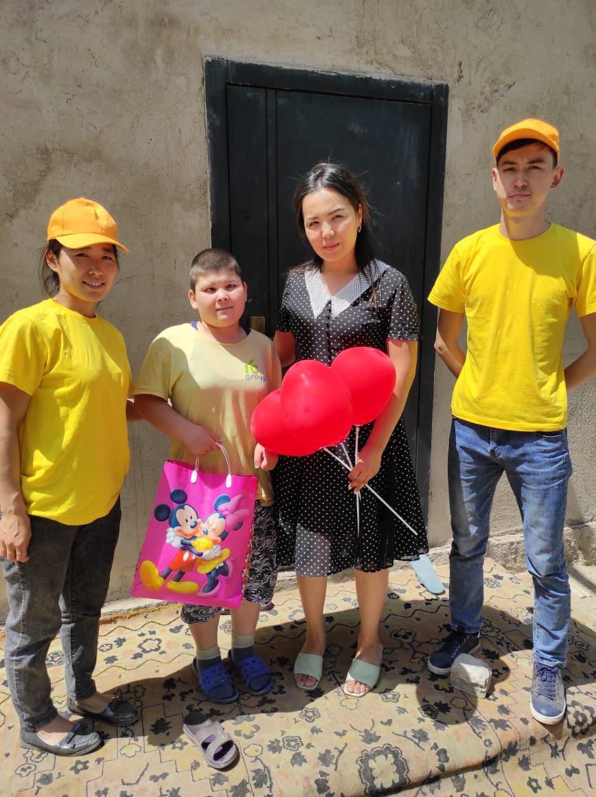 Ыбырай Алтынсарин атындағы орта мектебі » Ақпарат » 1-маусым - Халықаралық балаларды қорғау күні мектебімізден үйден оқитын оқушыларға арнайы сыйлықтар табыстап, балаларымызды қуанттық