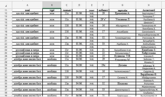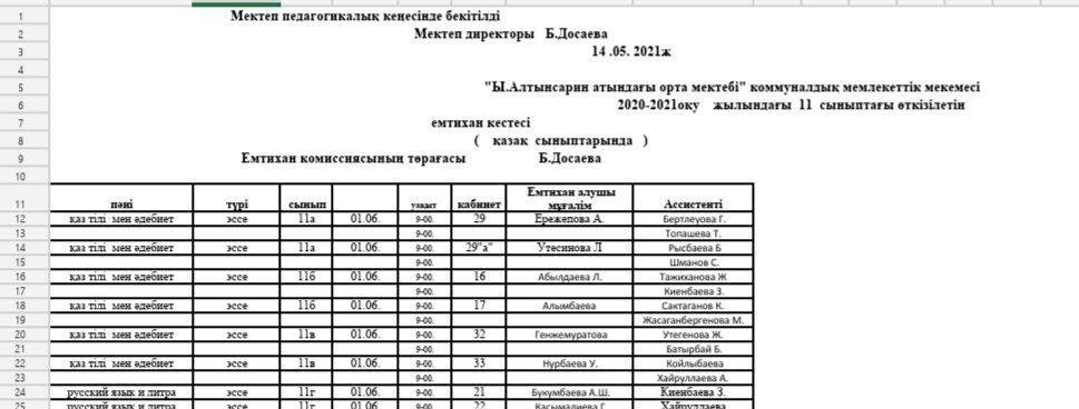 Қорытынды аттестаттау КЕСТЕСІ » Ыбырай Алтынсарин атындағы орта мектебі
