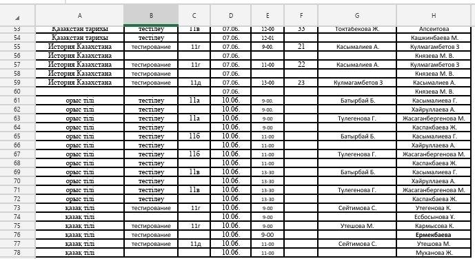 Қорытынды аттестаттау КЕСТЕСІ