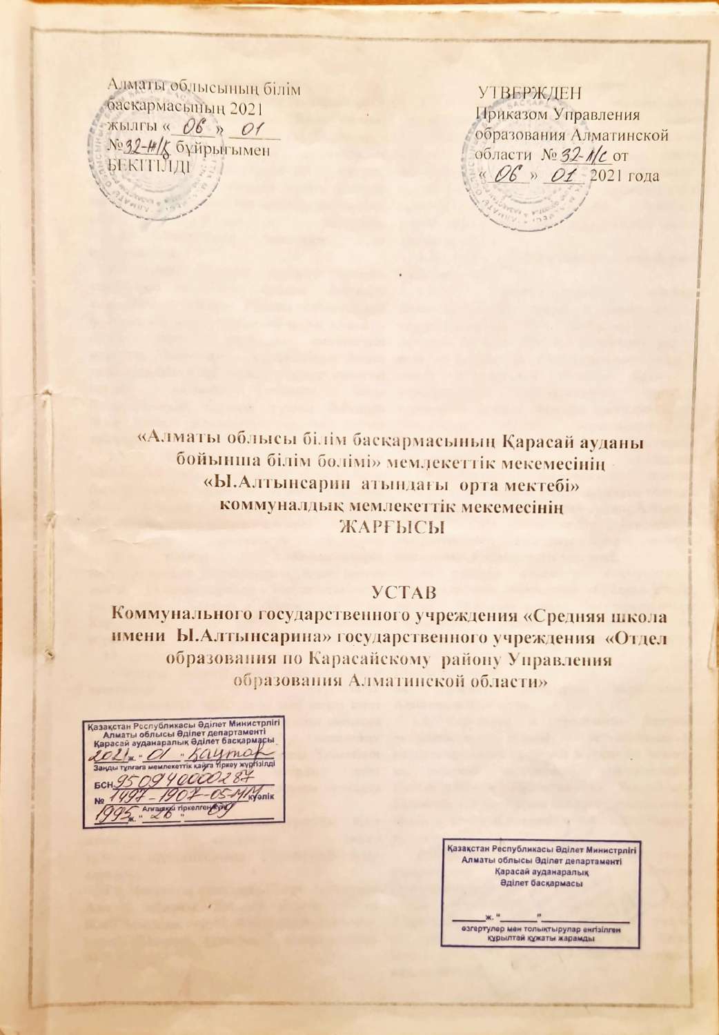 Білім саласына қатысты Ереже мен Жарғылар » Ыбырай Алтынсарин атындағы орта мектебі