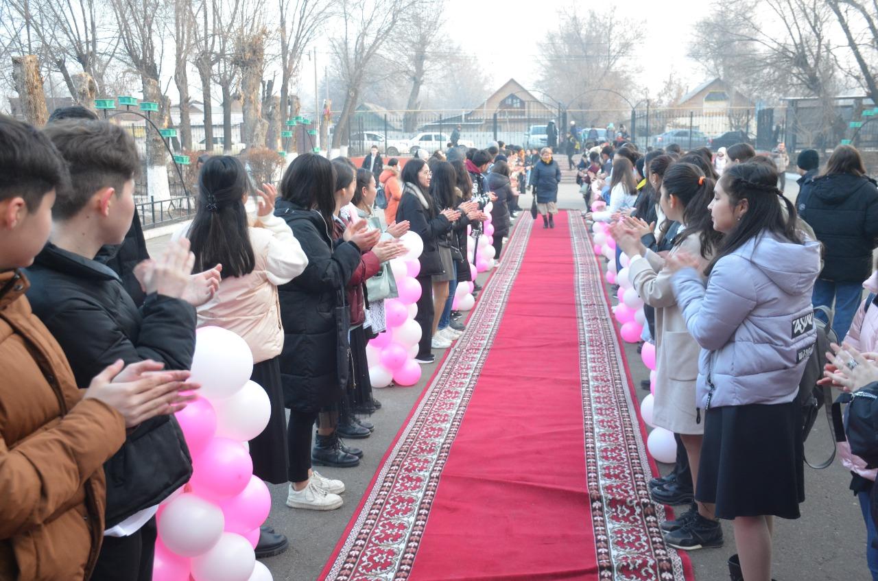 8-наурыз Халықаралық әйелдер мерекесіне орай мектебімізде "Арулар-асыл жандар" тақырыбында концерттік бағдарлама өткізілді. Оқушылардың мектебіміздің нәзік жанды аруларын күтіп алу рәсімін өткізіп. 10:00-де арнайы концерттік бағдарламамен жалғасты. Мектеп жас мамандары Мейіржанов Ғабиден,Ильясов Медеубек,Доскалиев Мұқағалидың орындауында "16 қыз", "Бес" өлеңдері мерекелік кештің сәнін берді.