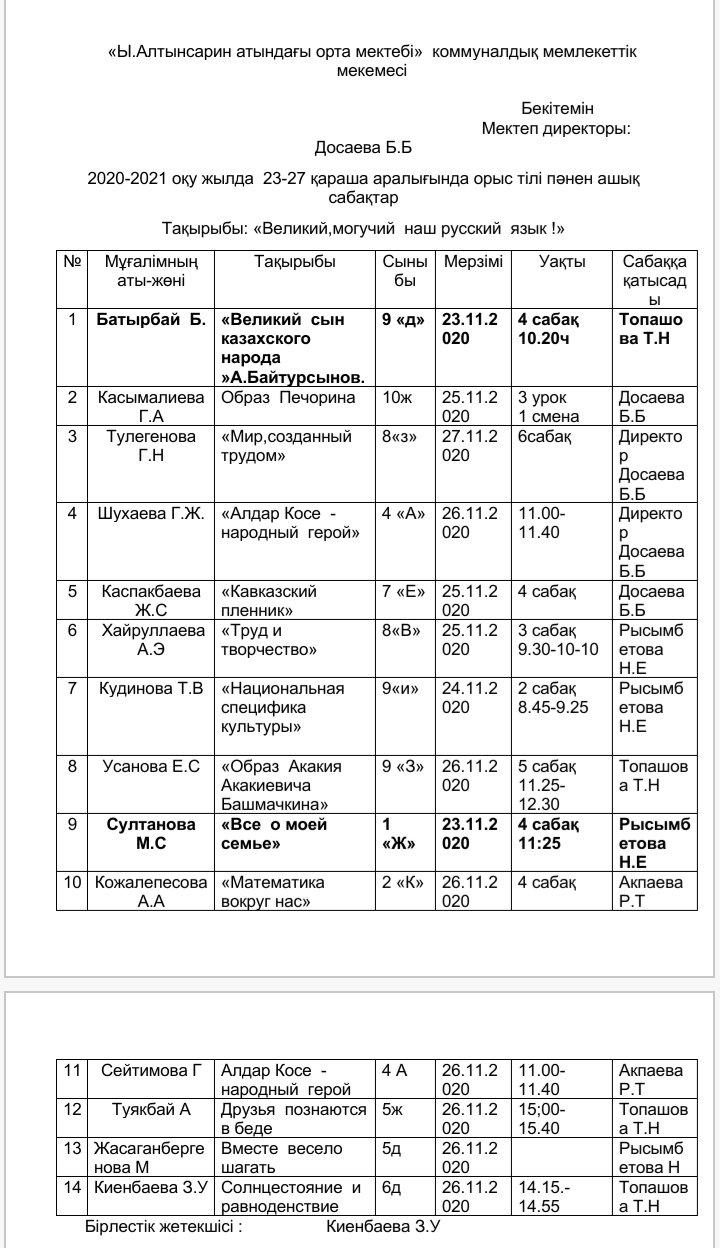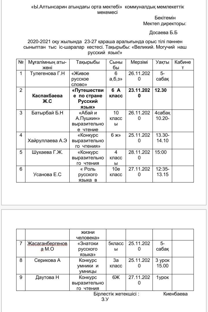 Бірлестік жұмыстарының онкүндігі » Ыбырай Алтынсарин атындағы орта мектебі