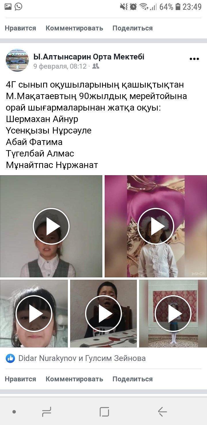 М.Мақатаевтың 90 жылдық мерейтойына орай Жас Ұландықтардың арнауы » Ыбырай Алтынсарин атындағы орта мектебі