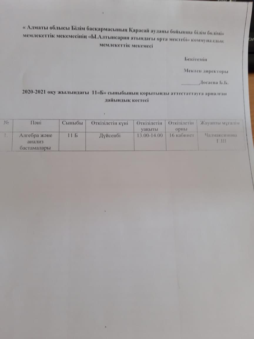 Қорытынды аттестаттау материталдары » Ыбырай Алтынсарин атындағы орта мектебі