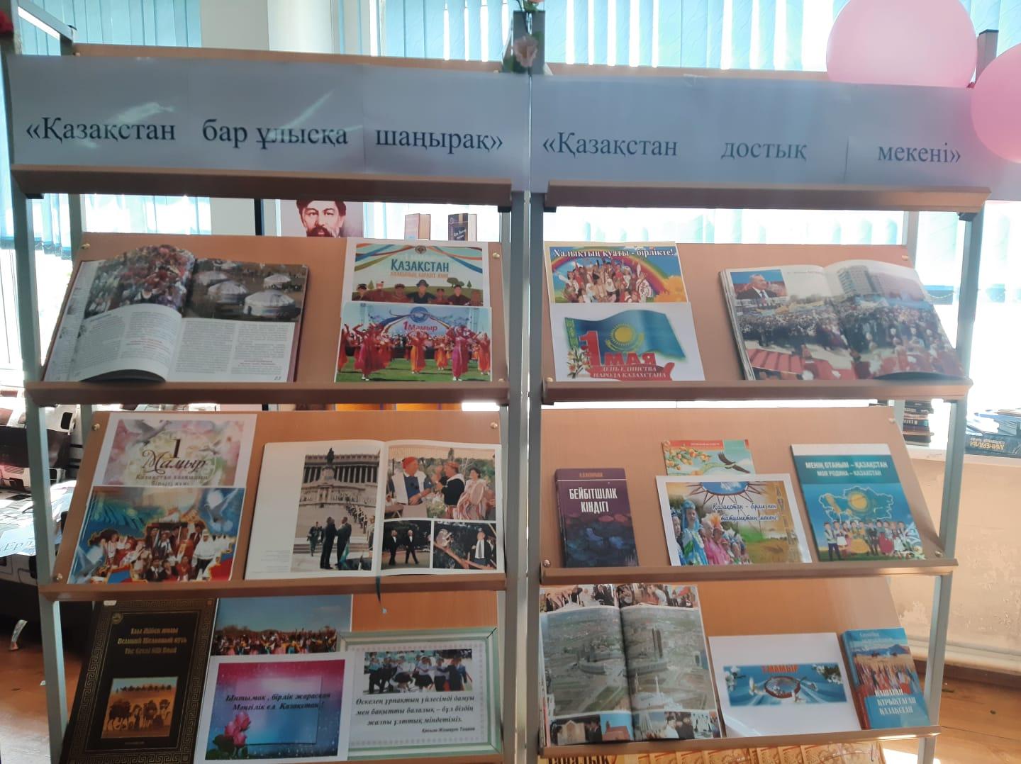 1-Мамыр Қазақстан халықтарының бірлігі күні мерекесіне арналған кітап көрмесін ұйымдастырды.