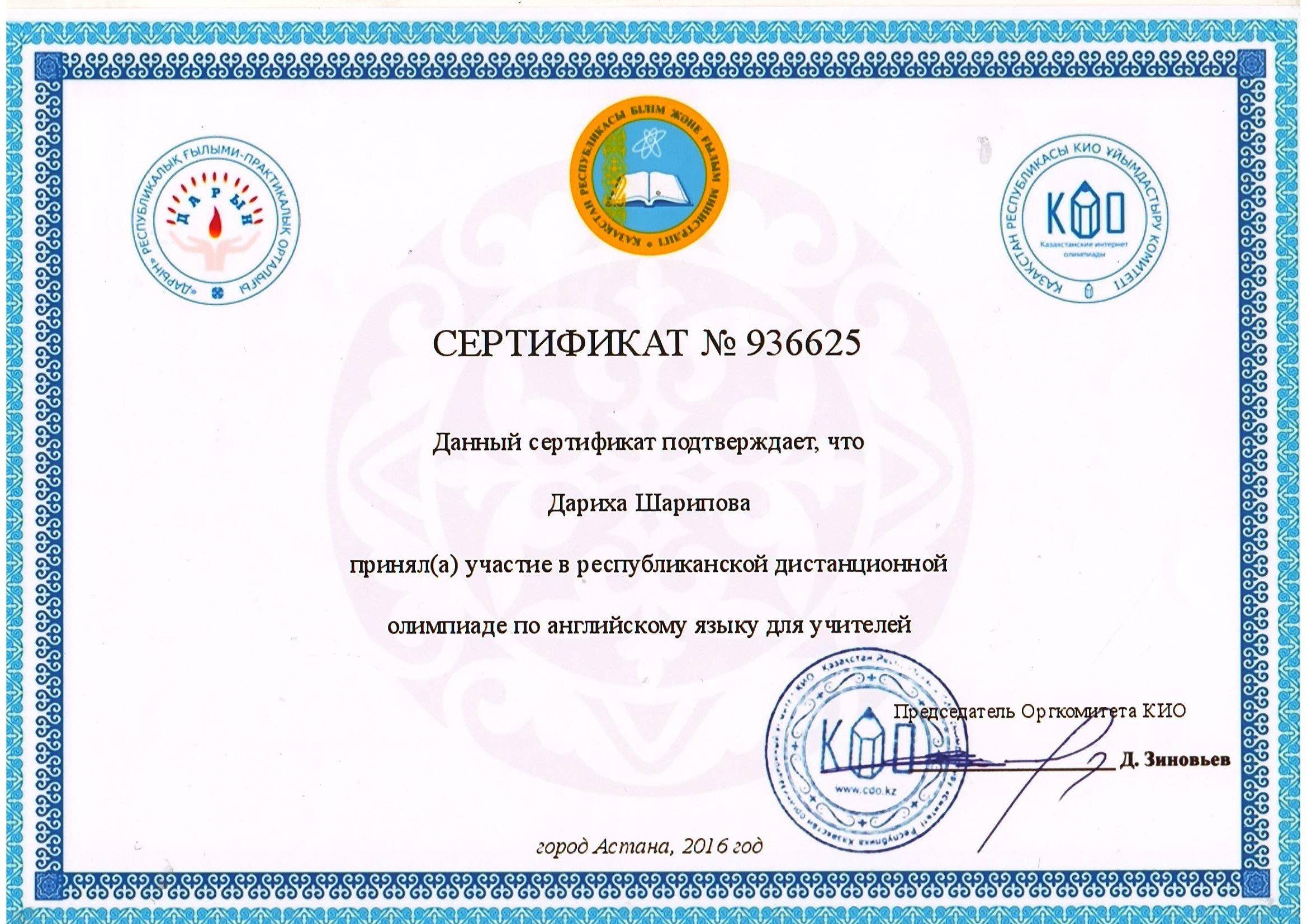 05 апрель 2017 Сертификат