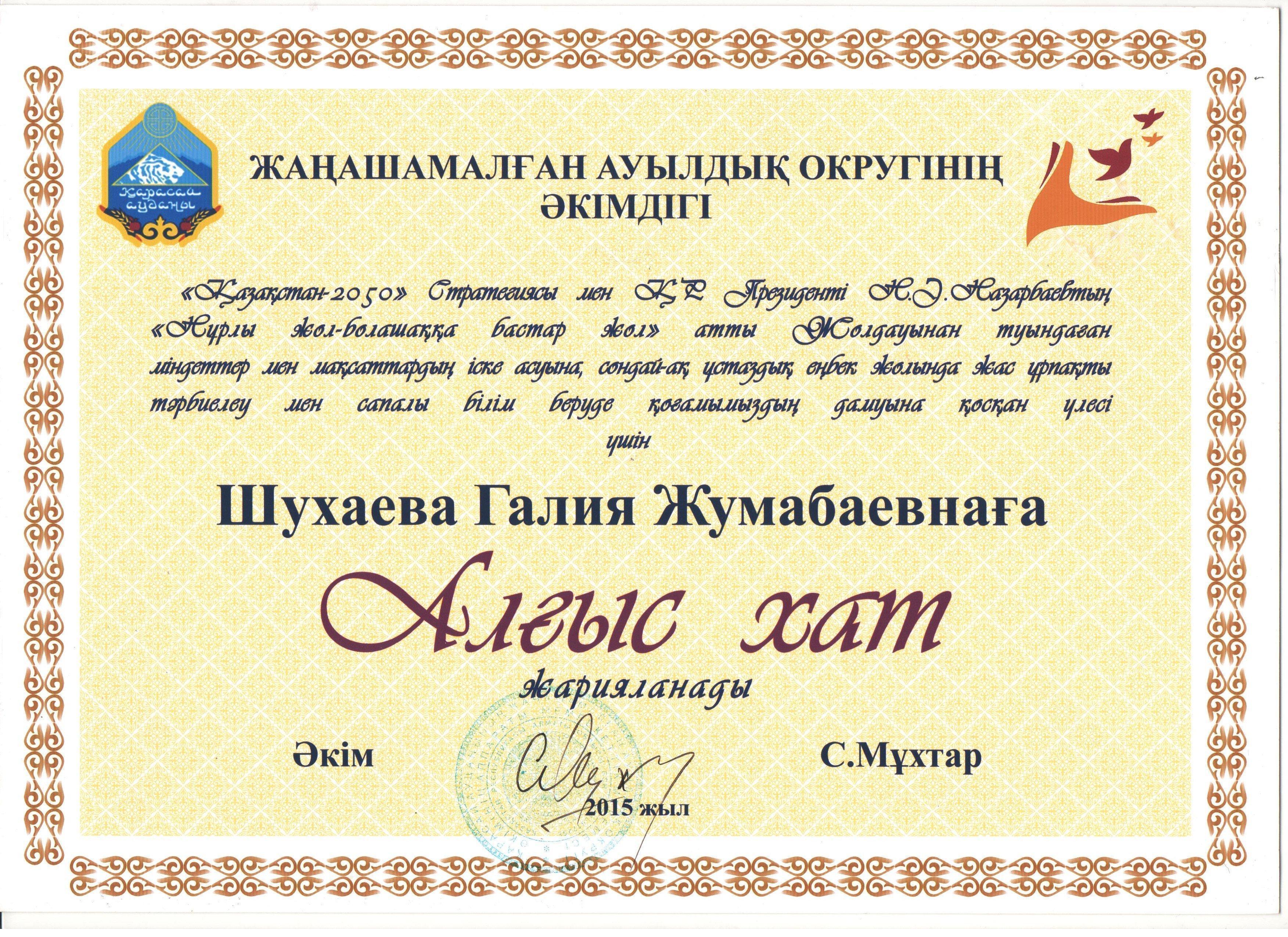 07 апрель 2017 Алғыс хат