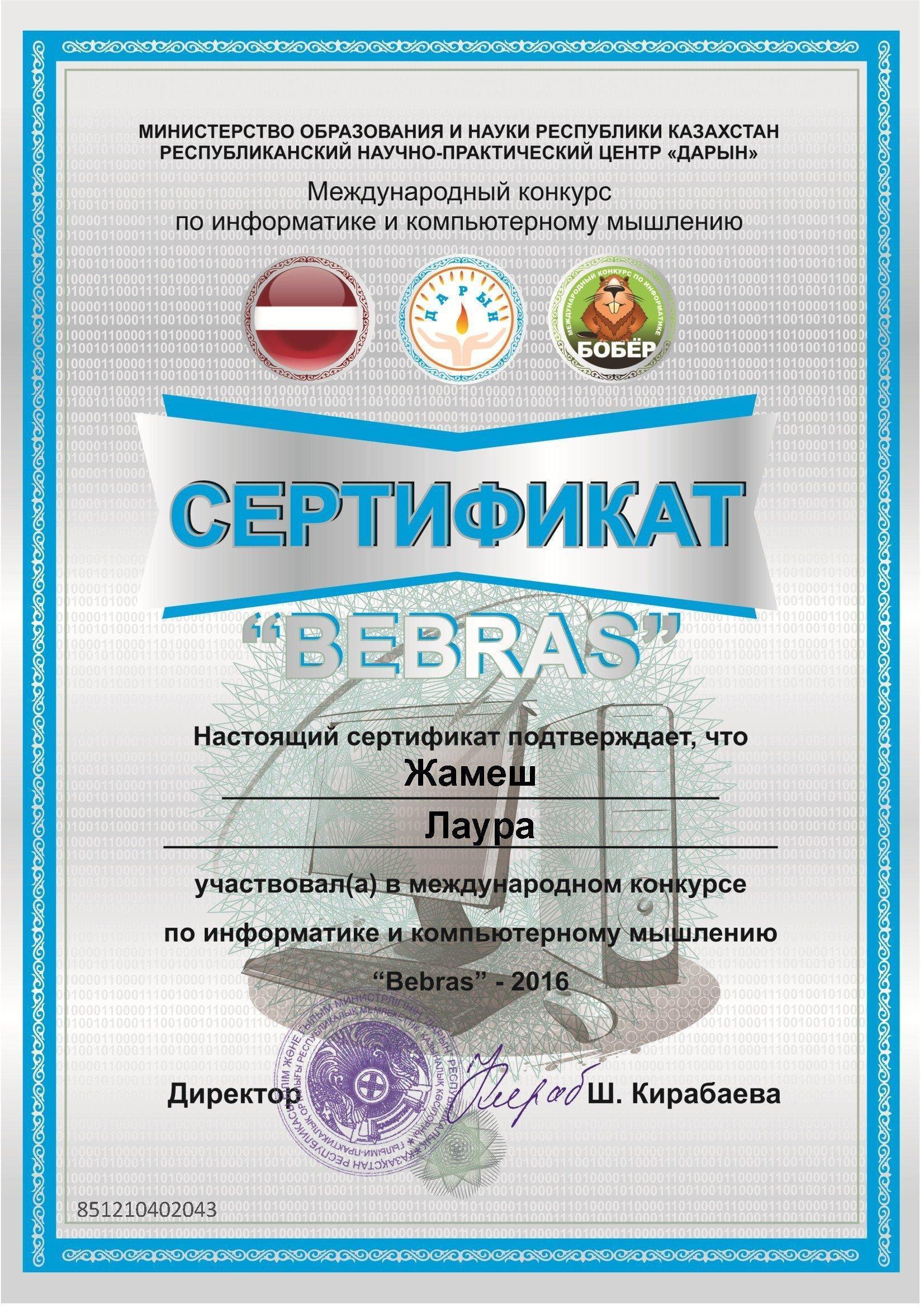 сертификат "Bebras" » Ыбырай Алтынсарин атындағы орта мектебі