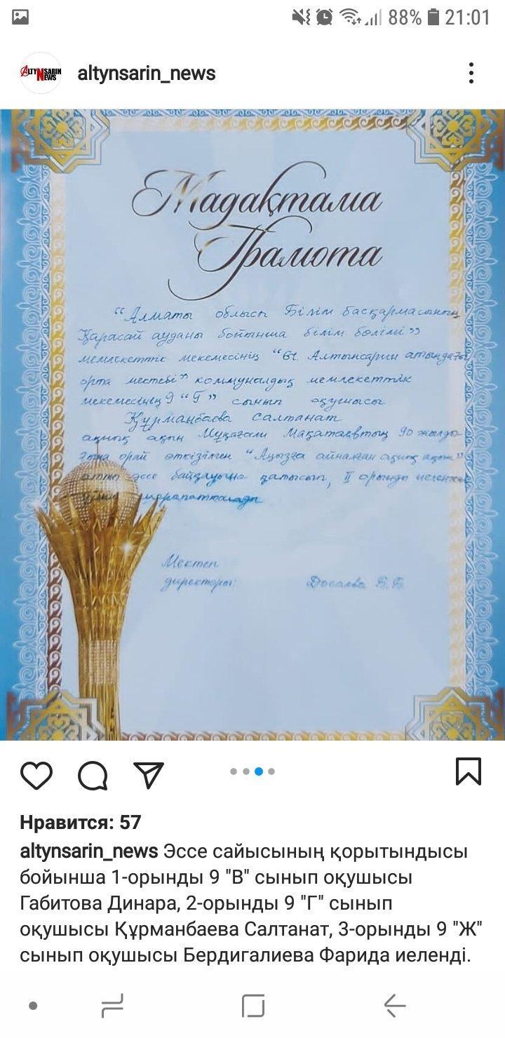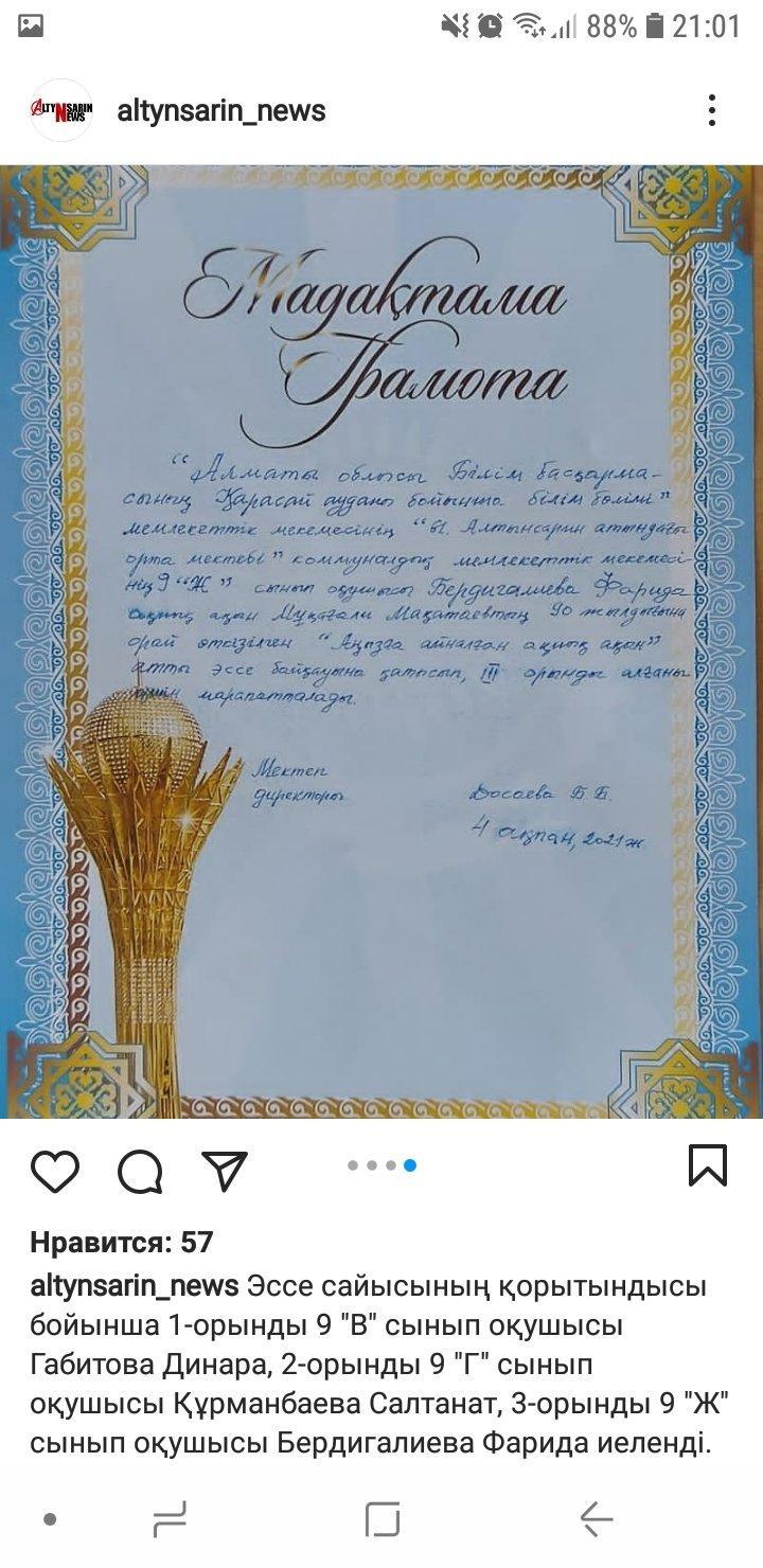 "Ы.Алтынсарин атындағы орта мектебі"