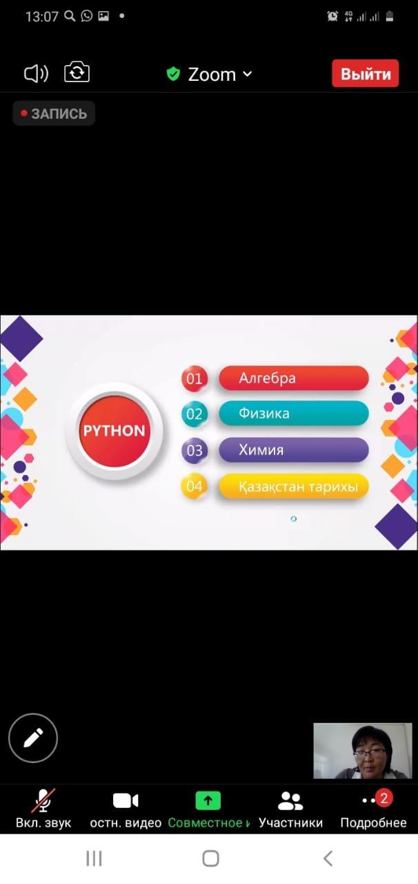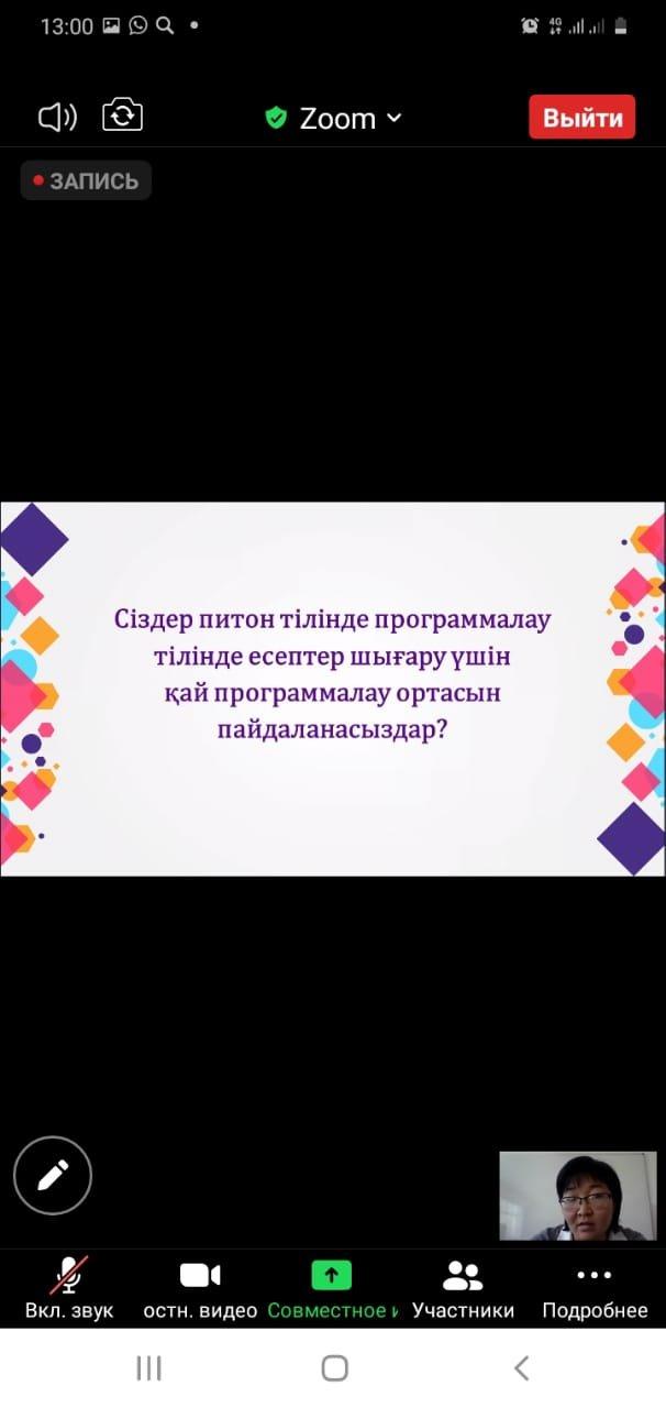 Мектепішілік «Информатика пәні бойынша оқушылардың функционалдық сауаттылығын қалыптастыру жолдары» тақырыбында қашықтықтан ZOOM платформасымен өткізілген вебинар 13.04.2021жыл.