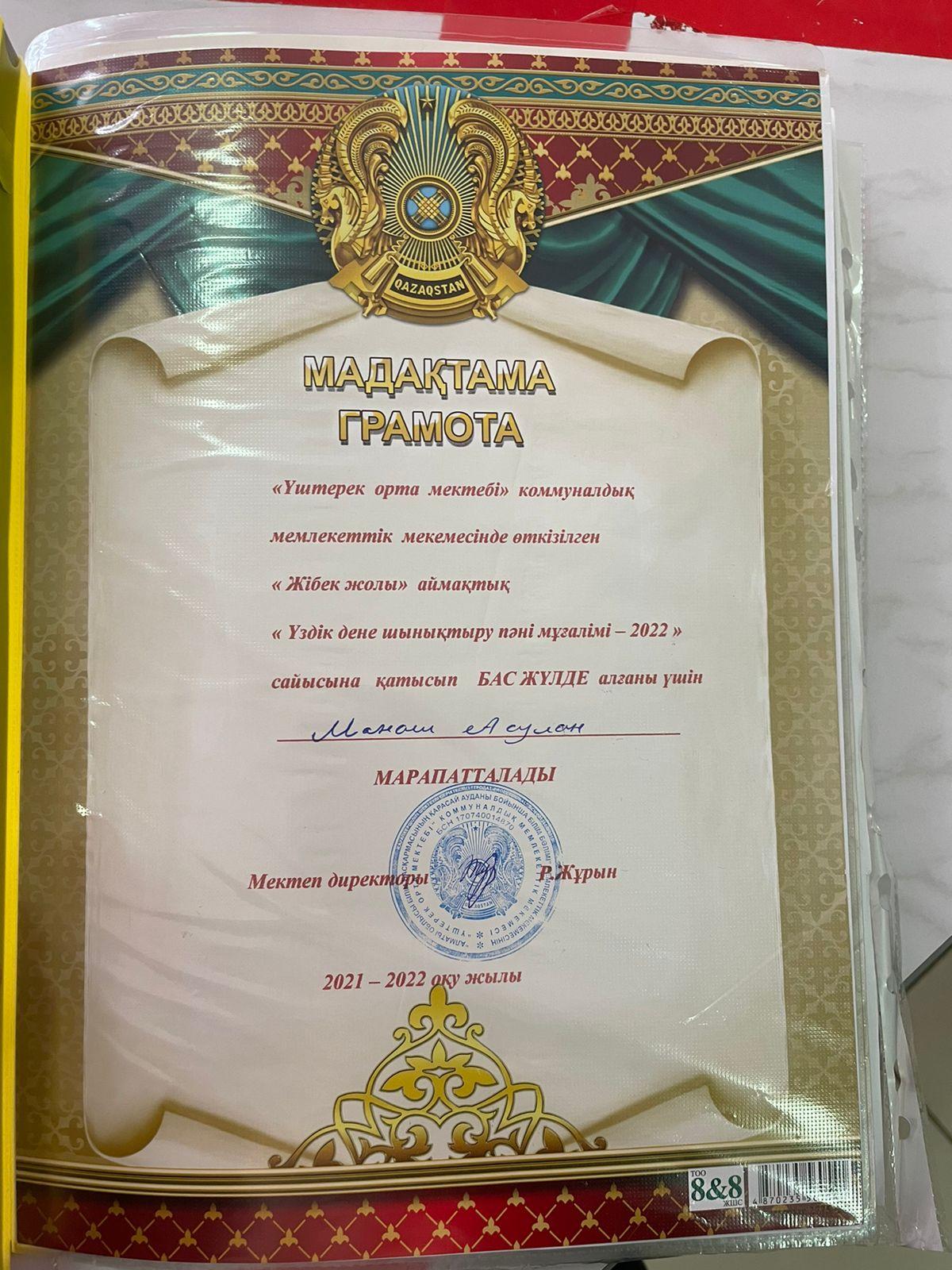28 март 2022 0 1 2 3 4 5 Аудандық "Үздік дене шынықтыру -2022"байқауынан Манаш Асулан бас жүлде иеленді.Құттықтаймыз!!
