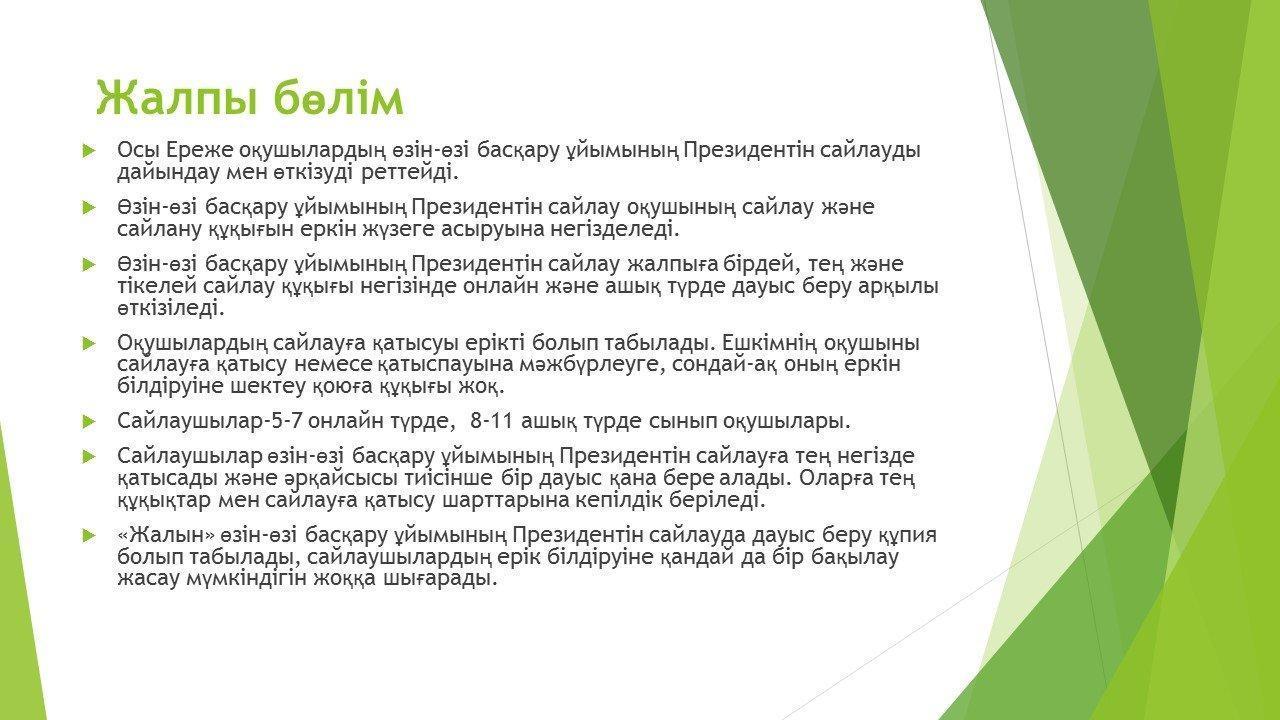 » » Мектептің "Жалын" өзін-өзі басқару ұйымына президенттікеке сайлау