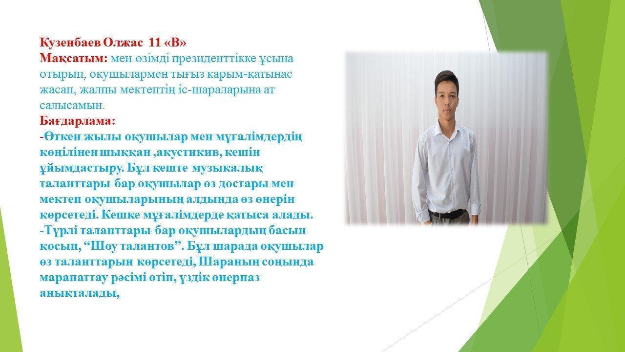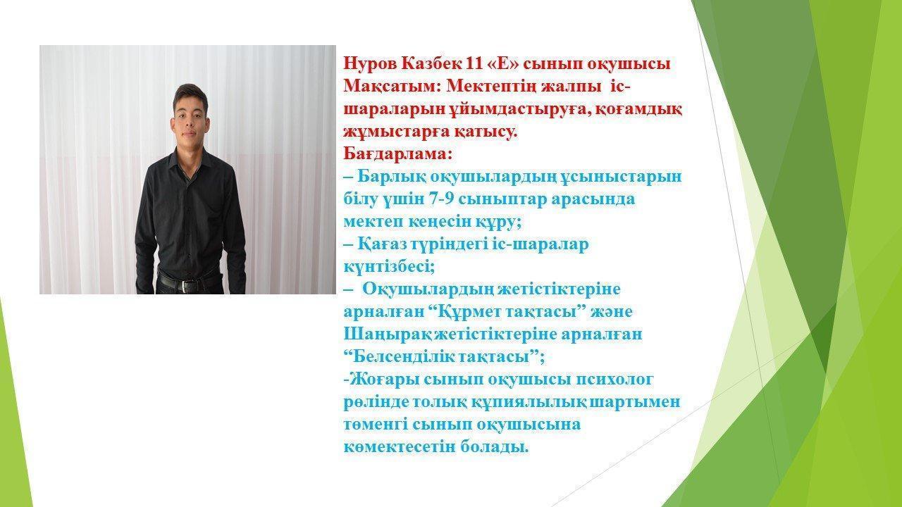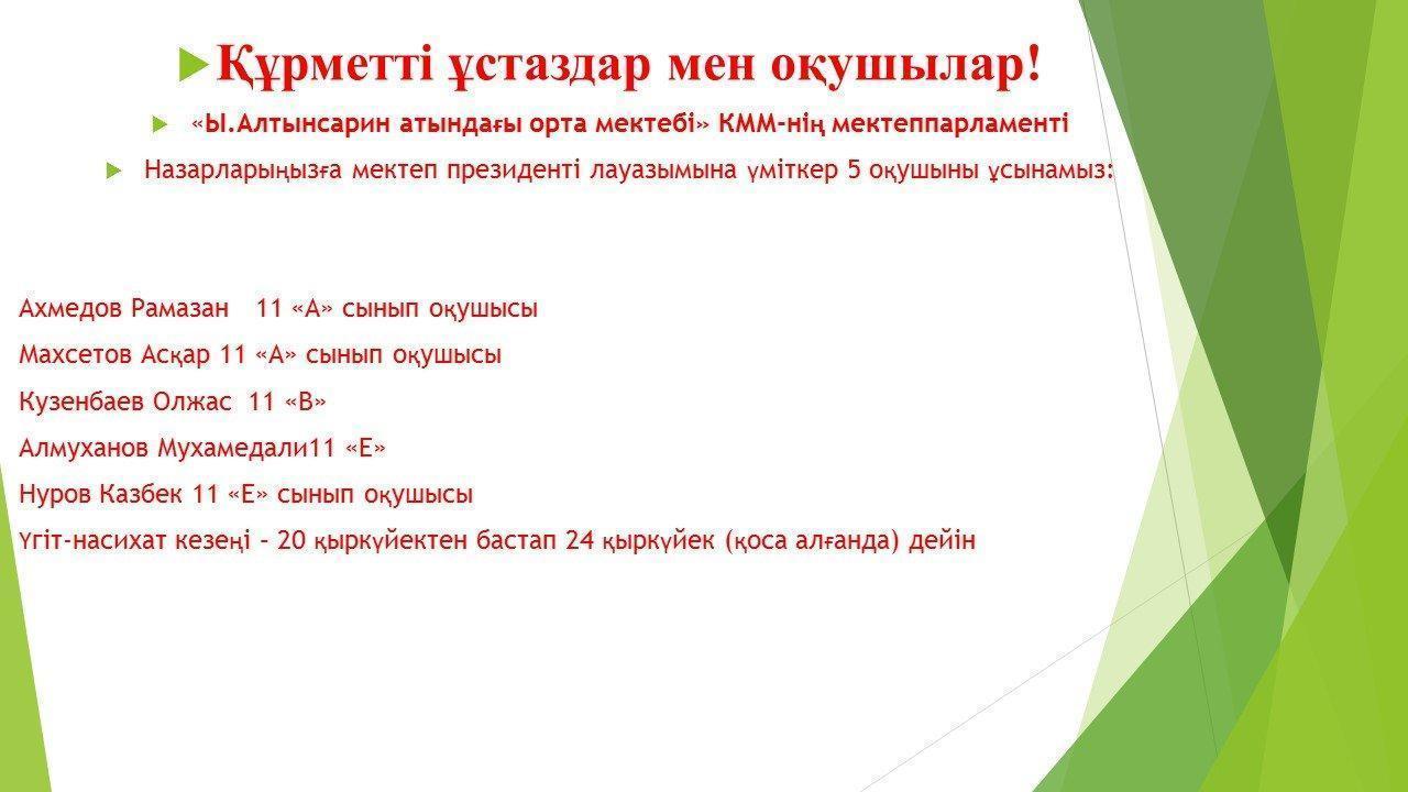 Мектептің "Жалын" өзін-өзі басқару ұйымына президенттікеке сайлау » Ыбырай Алтынсарин атындағы орта мектебі