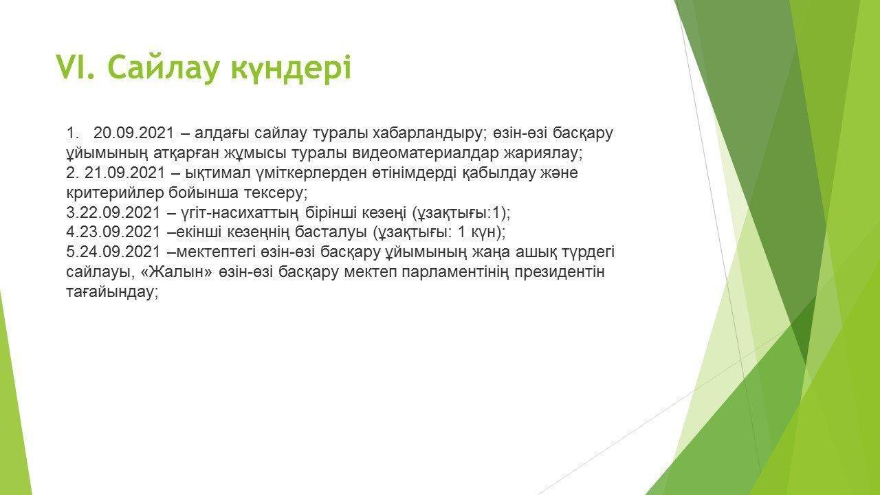 Мектептің "Жалын" өзін-өзі басқару ұйымына президенттікеке сайлау