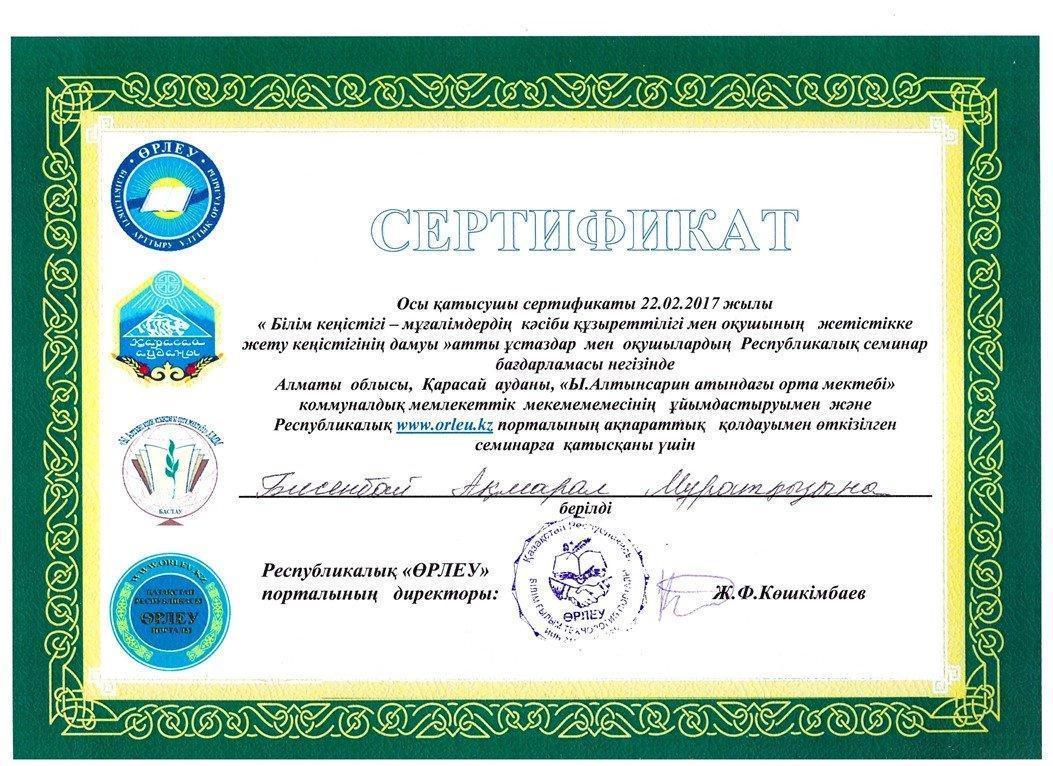 Сертефикат » Ыбырай Алтынсарин атындағы орта мектебі