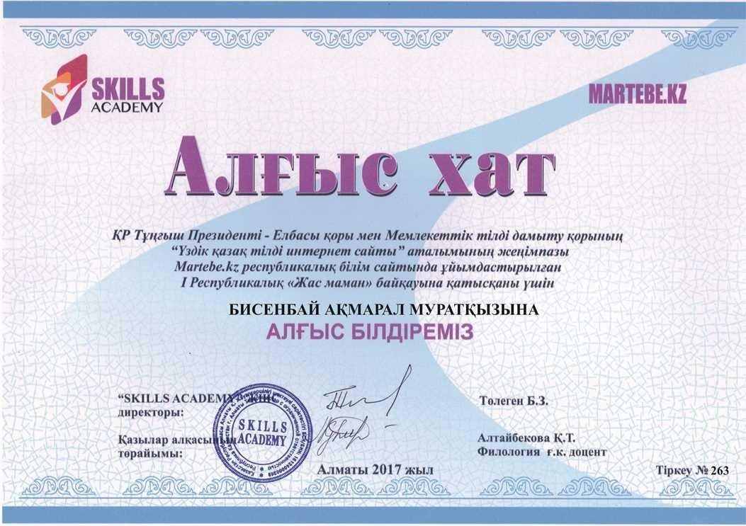 Жас маман байқауы » Ыбырай Алтынсарин атындағы орта мектебі