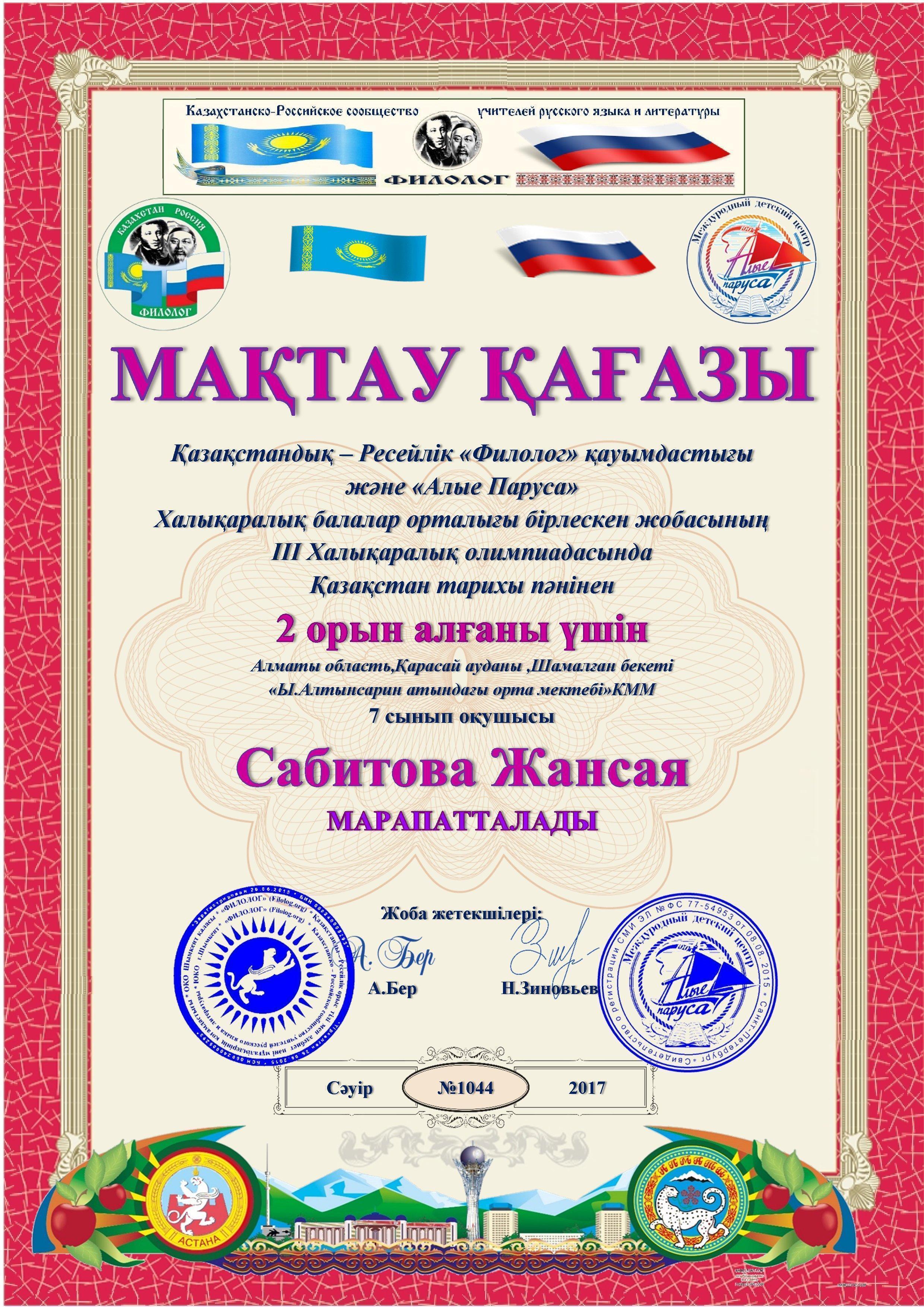 мақтау қағазы » Ыбырай Алтынсарин атындағы орта мектебі