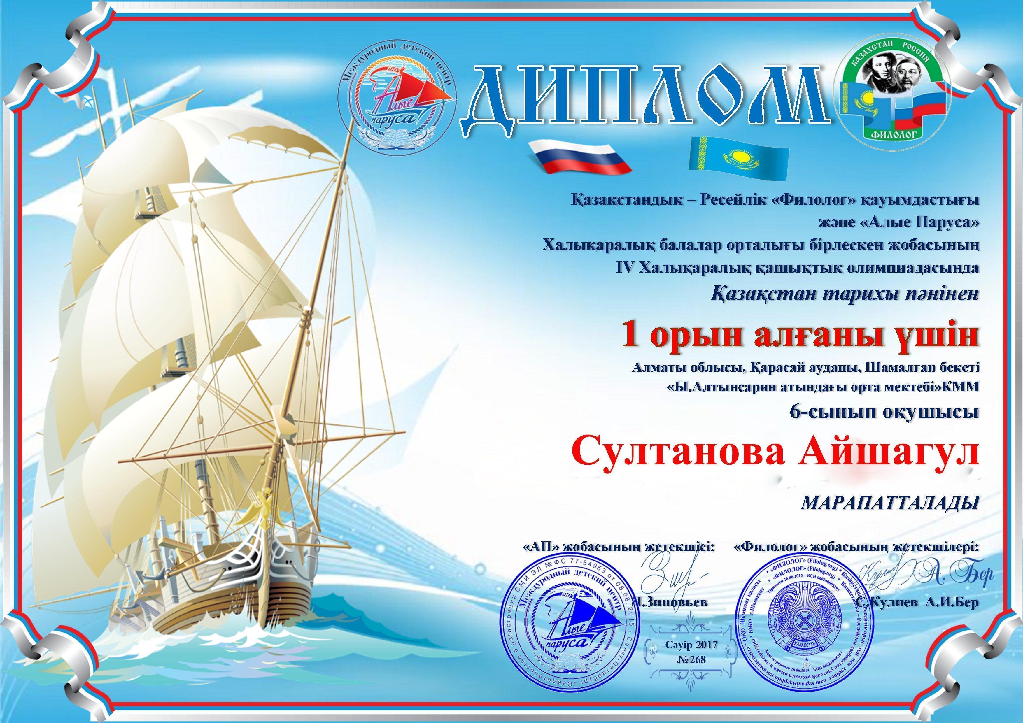 диплом » Ыбырай Алтынсарин атындағы орта мектебі