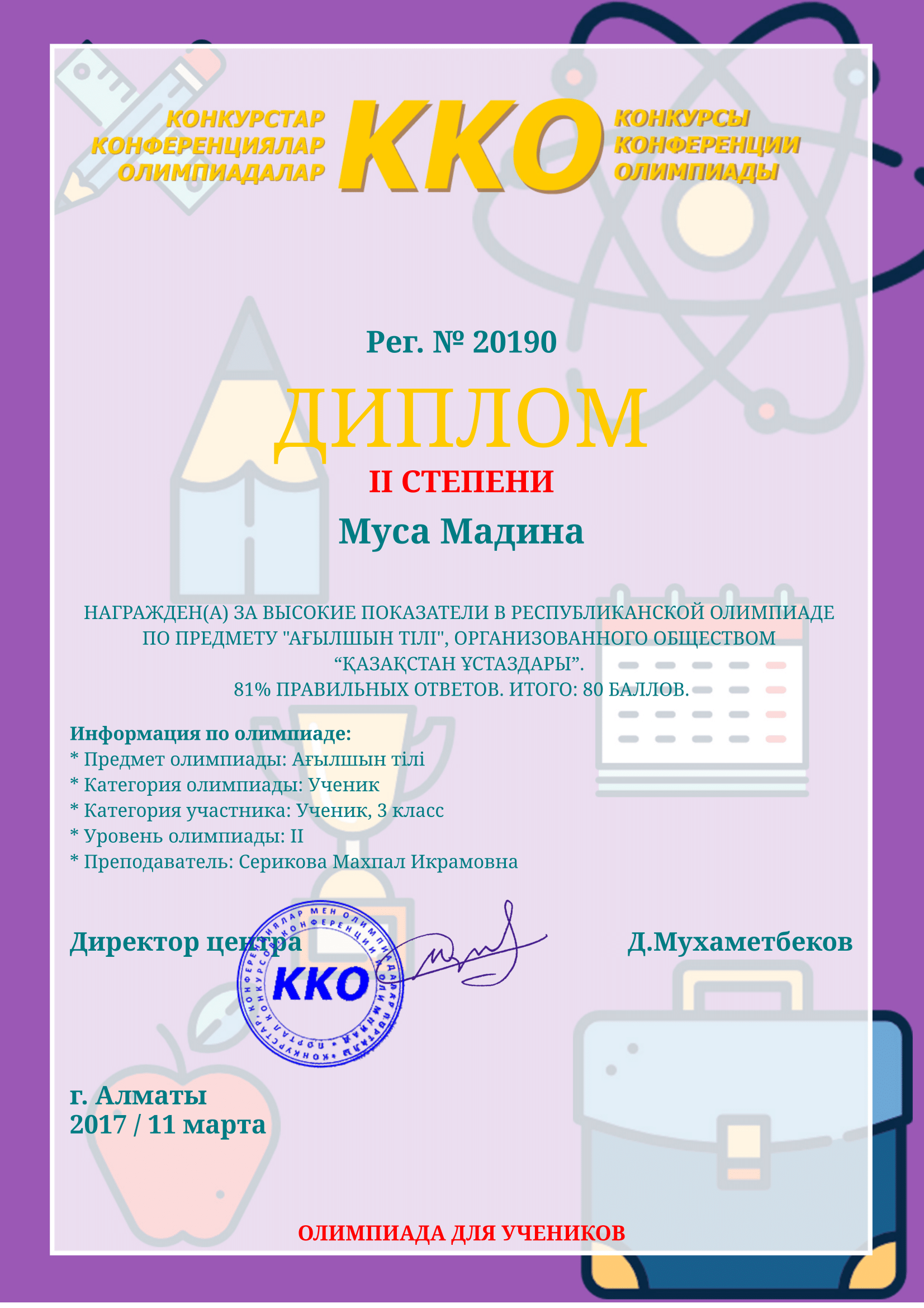 ККО Диплом Муса Мадина » Ыбырай Алтынсарин атындағы орта мектебі
