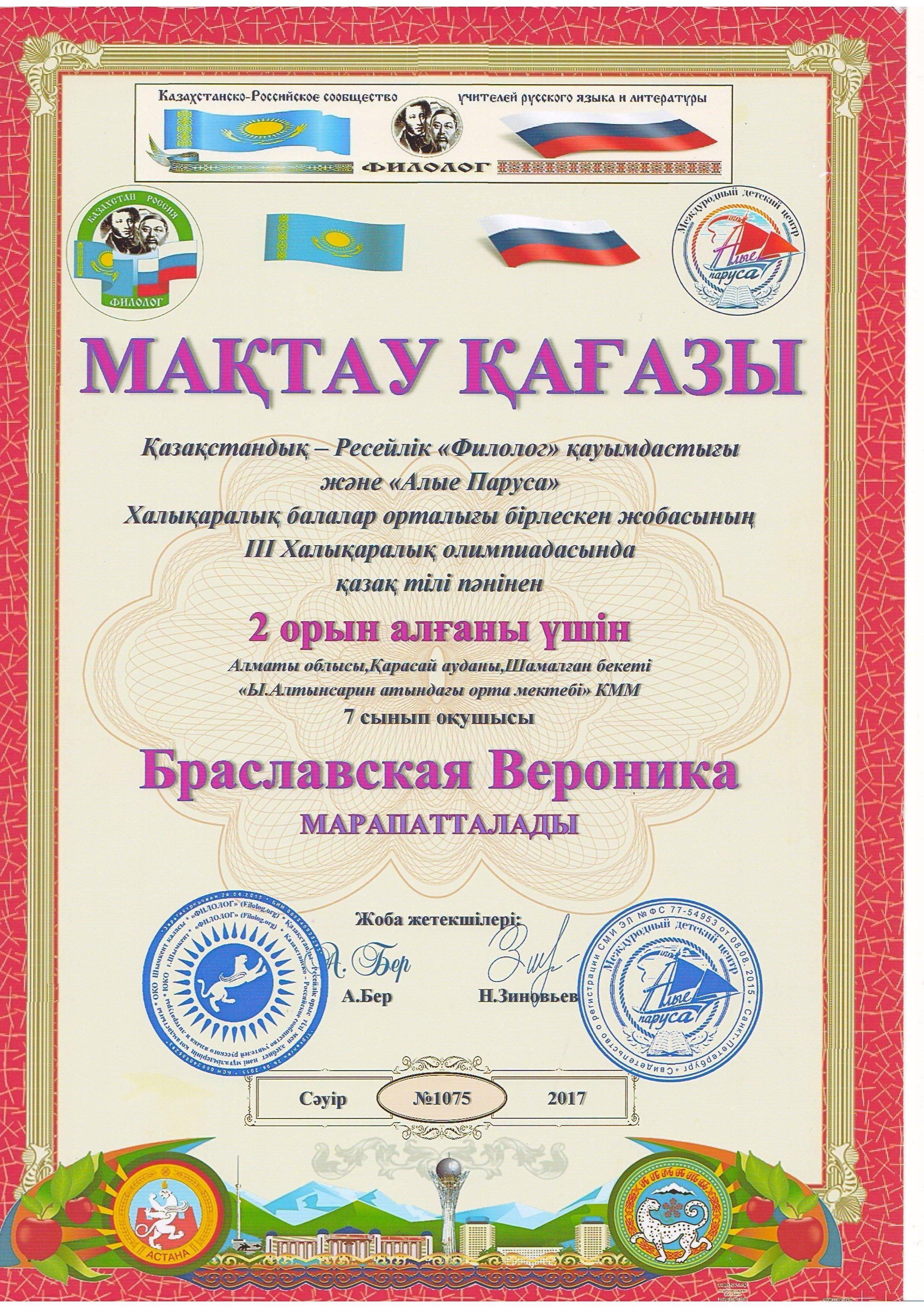 Диплом » Ыбырай Алтынсарин атындағы орта мектебі