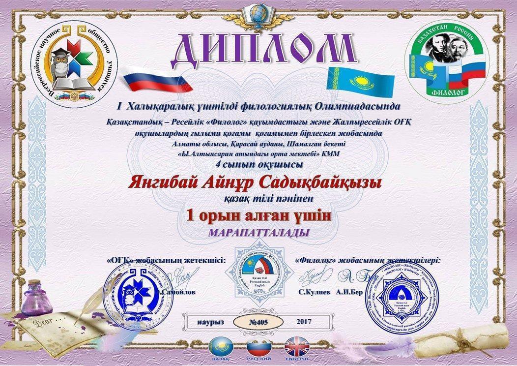 дипломы » Ыбырай Алтынсарин атындағы орта мектебі