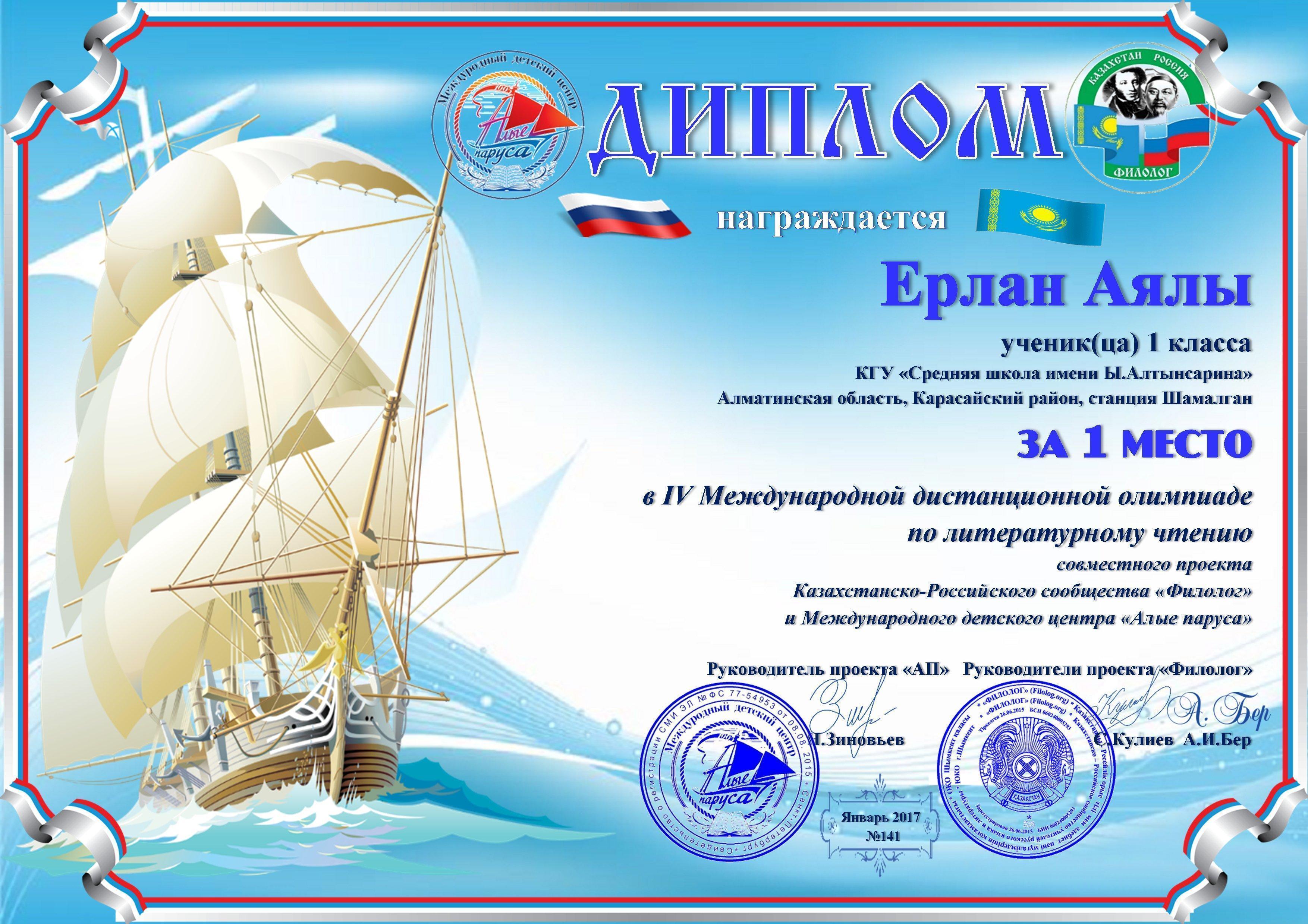 диплом » Ыбырай Алтынсарин атындағы орта мектебі
