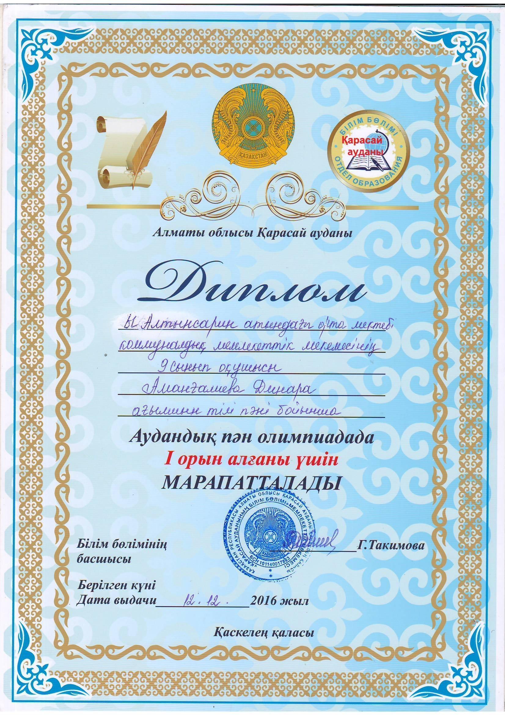 Грамота » Ыбырай Алтынсарин атындағы орта мектебі