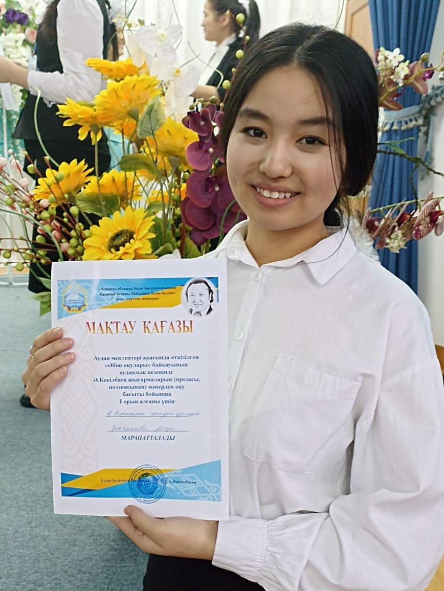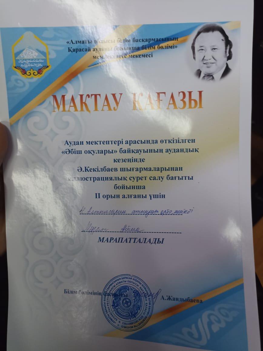 04 февраль 2022 0 1 2 3 4 5 Аудандық Ә.Кекілбаевтың шығармалары (прозасы, поэзиясынан) мәнерлеп оқудан 9е сынып оқушысы Бекбергенова Айгүл Құдайбергенқызы 1 орын алды Аудандық Ә.Кекілбаевтың шығармалары (прозасы, поэзиясынан) мәнерлеп оқудан 9е сынып оқушысы Бекбергенова Айгүл Құдайбергенқызы 1 орын иеленді.