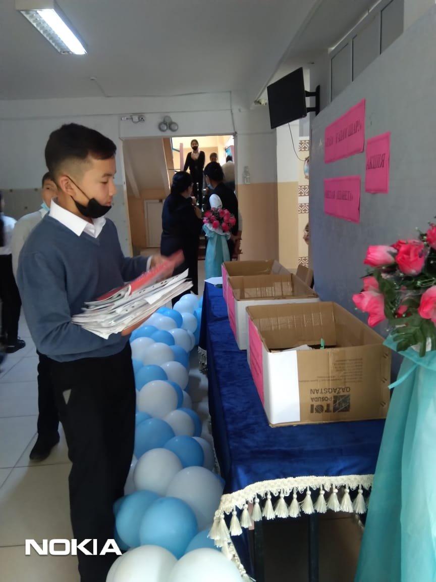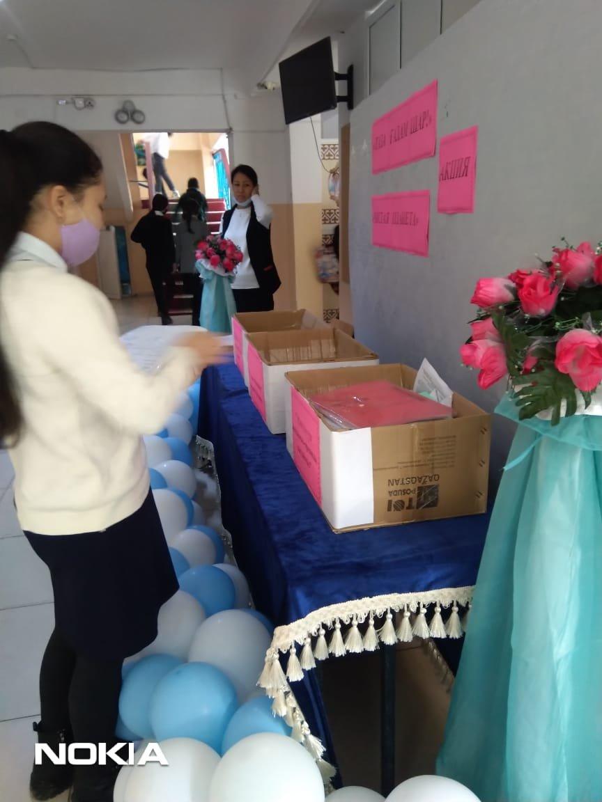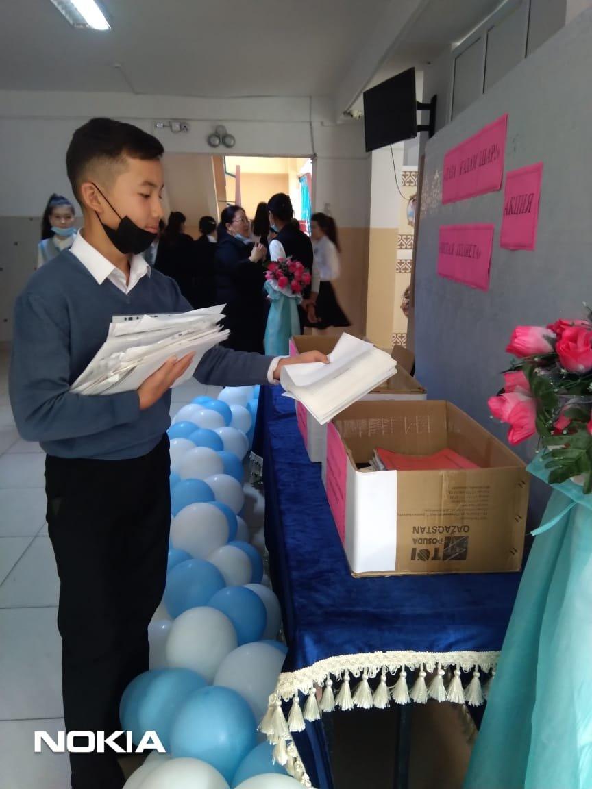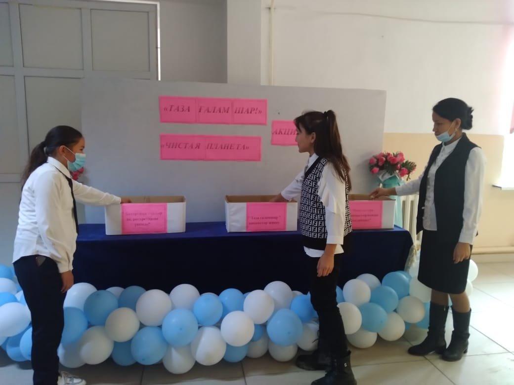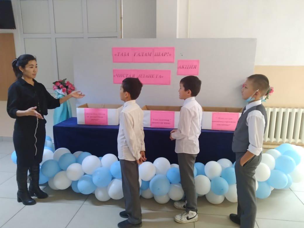 Шығармашылық қабілеттерін жақсылық жасай білу іскерліктерін, ойлау қабілетін дамыту, өз ойын еркін жеткізе білуге дағдыландыру"Таза ғаламшар" табиғатты тазалау, қалған қалдықтарды жинақтау акциясы аясында мектебіміздің 5-10 сынып оқушылары арасында "Таза ғаламшар" қақпақтар жинау, "Макулатура жинаймыз-орманды сақтаймыз", "Батарейка тапсыр да, ресурстарды үнемде" 8 қараша күнінен бастап, 12 қараша аралығында акция өткізілді. Оқушылар кардон қағаздардан "Small робот" жасап, оқушыларға таныстырды. 5 "З" сыныбының Жұмабай Ердаулет өзінің тапқырлығымен, батарейка және қағаз қалдықтарын құрастырып, робот ойлап жасады. 9 сынып оқушылары 5 және 6 сынып оқушыларымен бірігіп, қағаз жинау жұмысына ат салысты. Таза табиғат-жер анамыздың көркі.