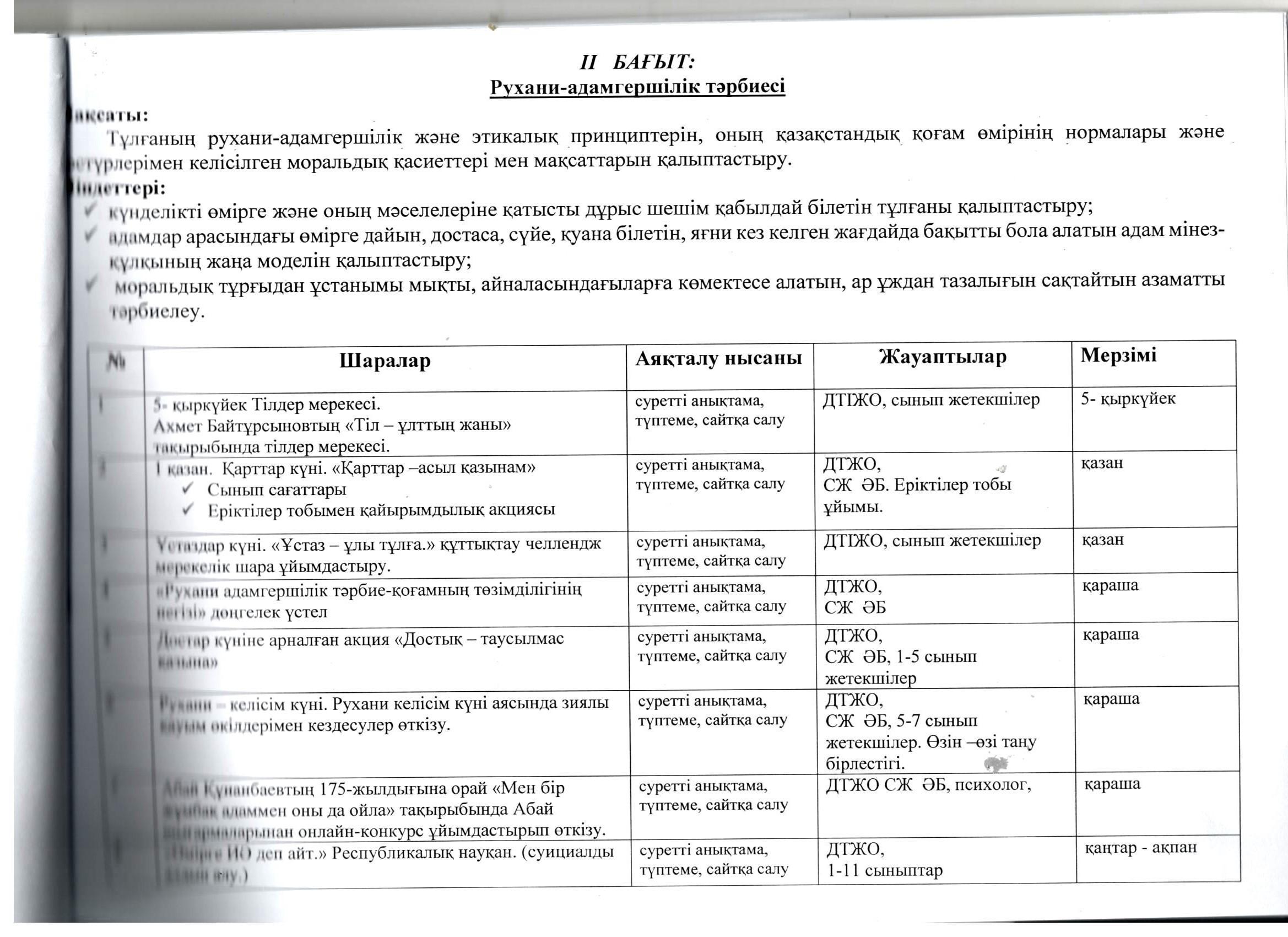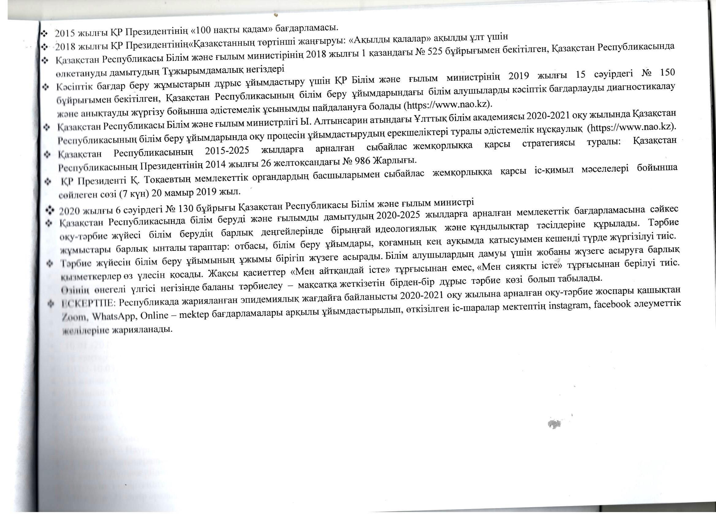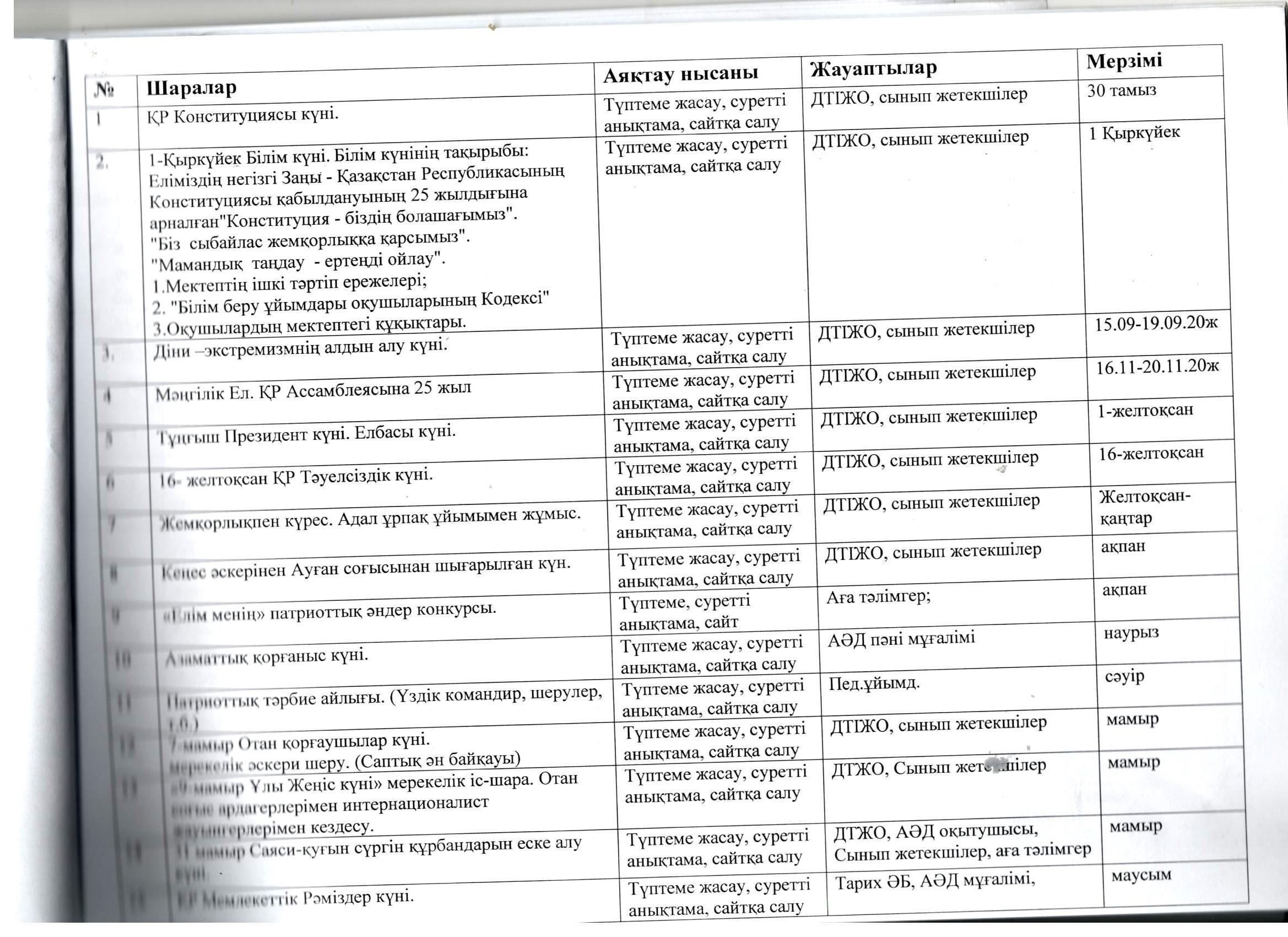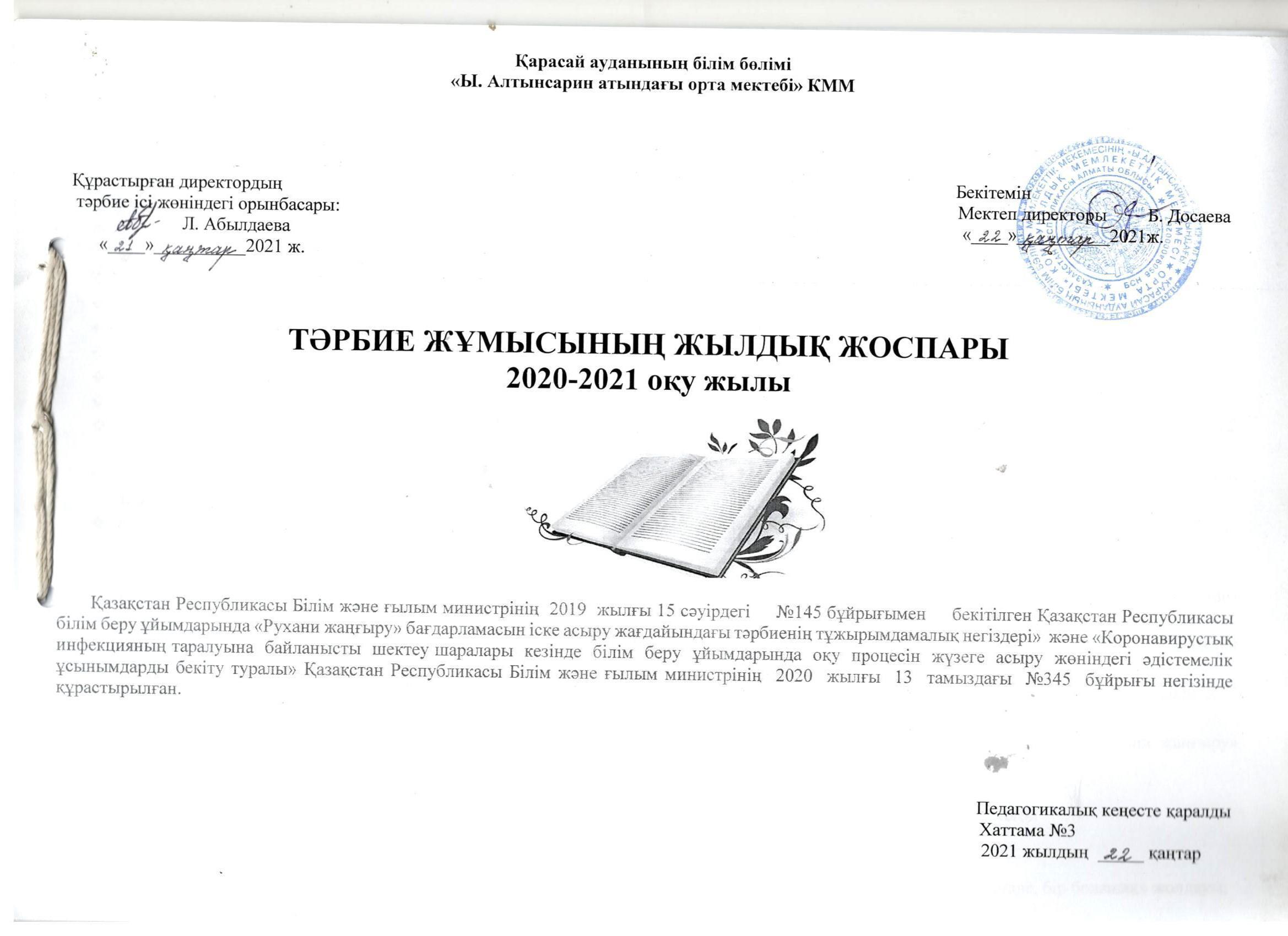 2020-2021 оқу жылы Тәрбие жоспары » Ыбырай Алтынсарин атындағы орта мектебі