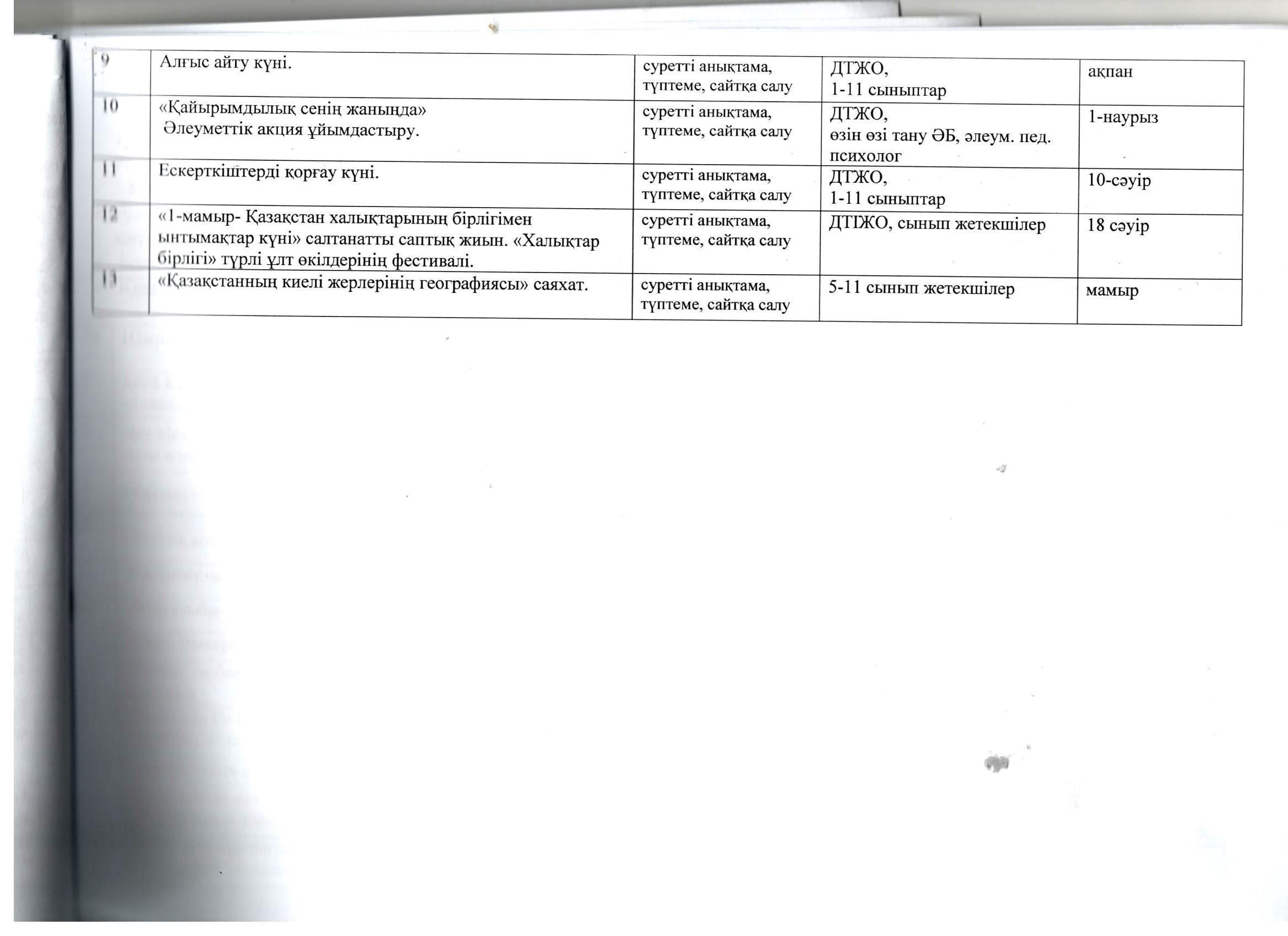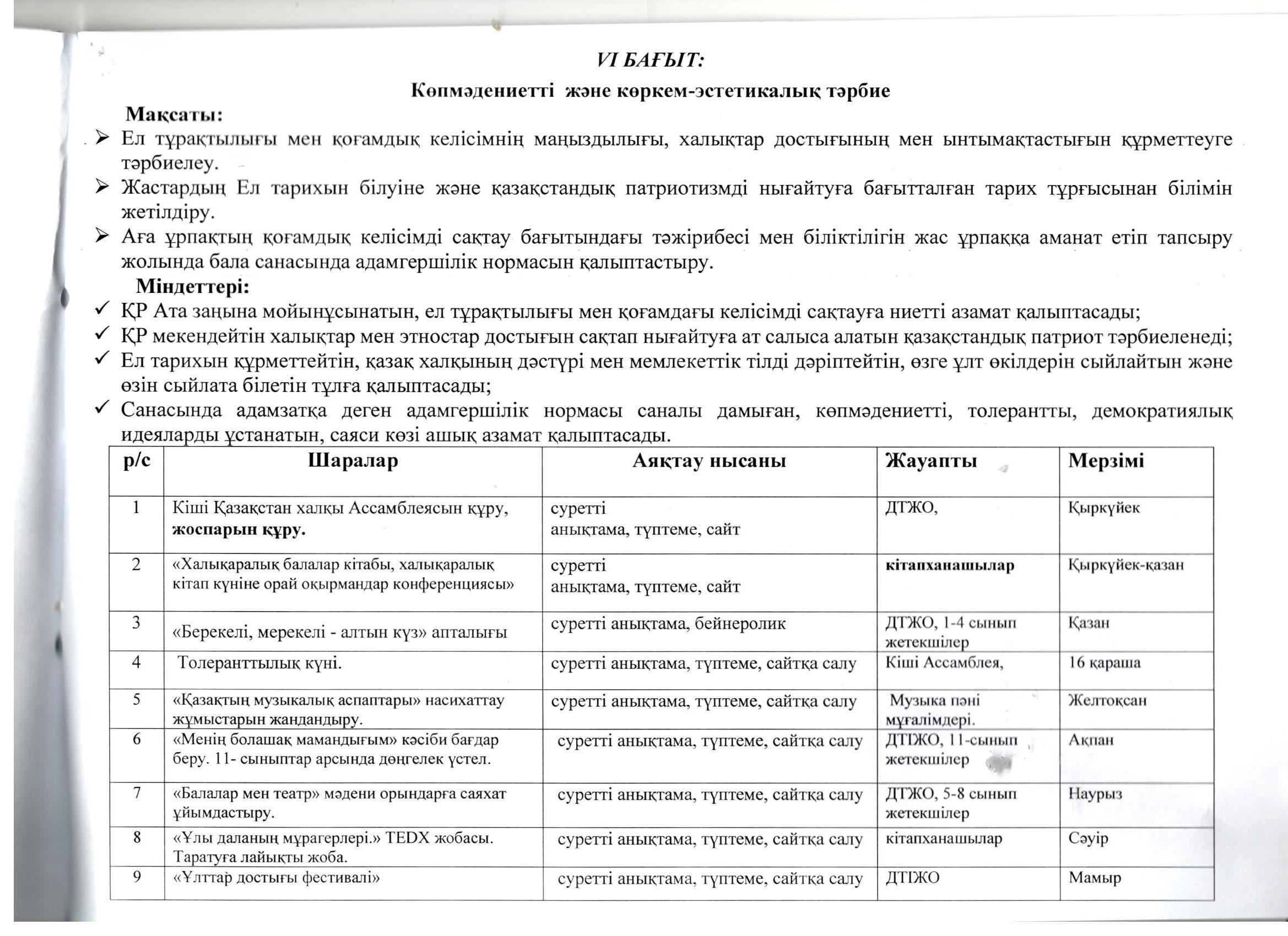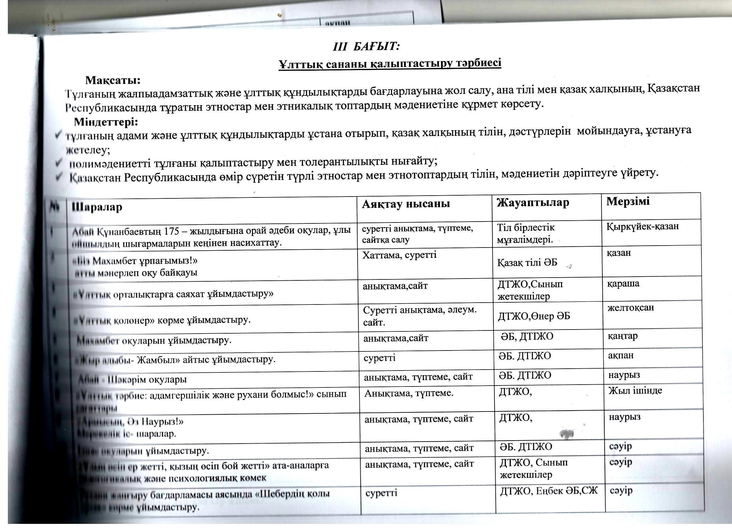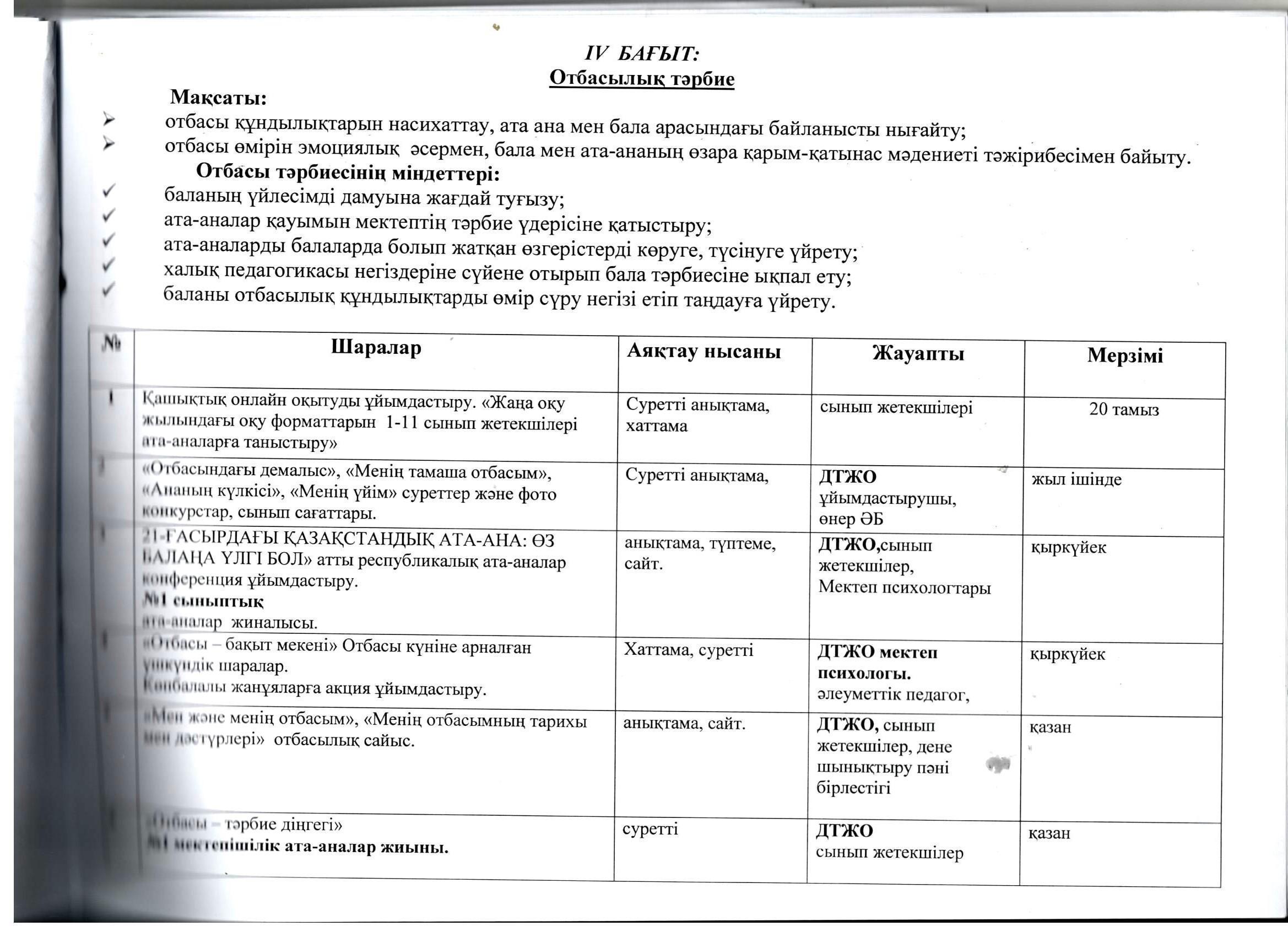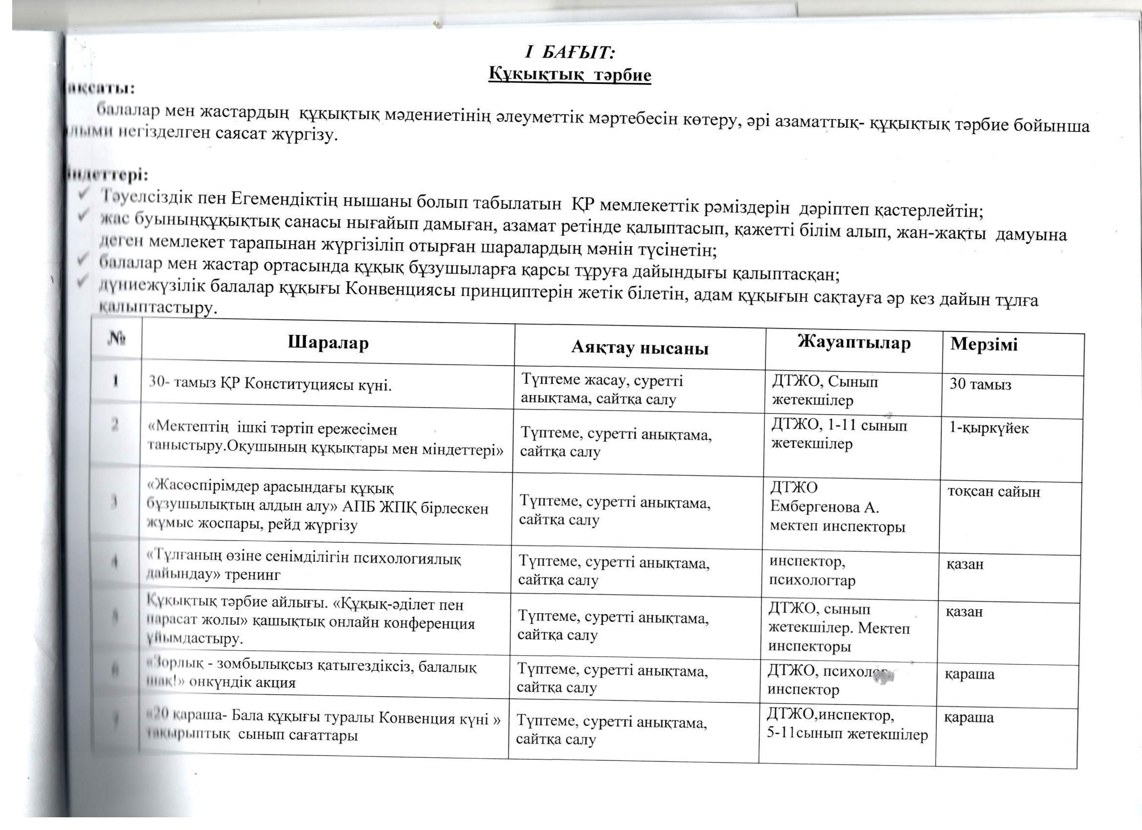 2020-2021 оқу жылы Тәрбие жоспары » Ыбырай Алтынсарин атындағы орта мектебі