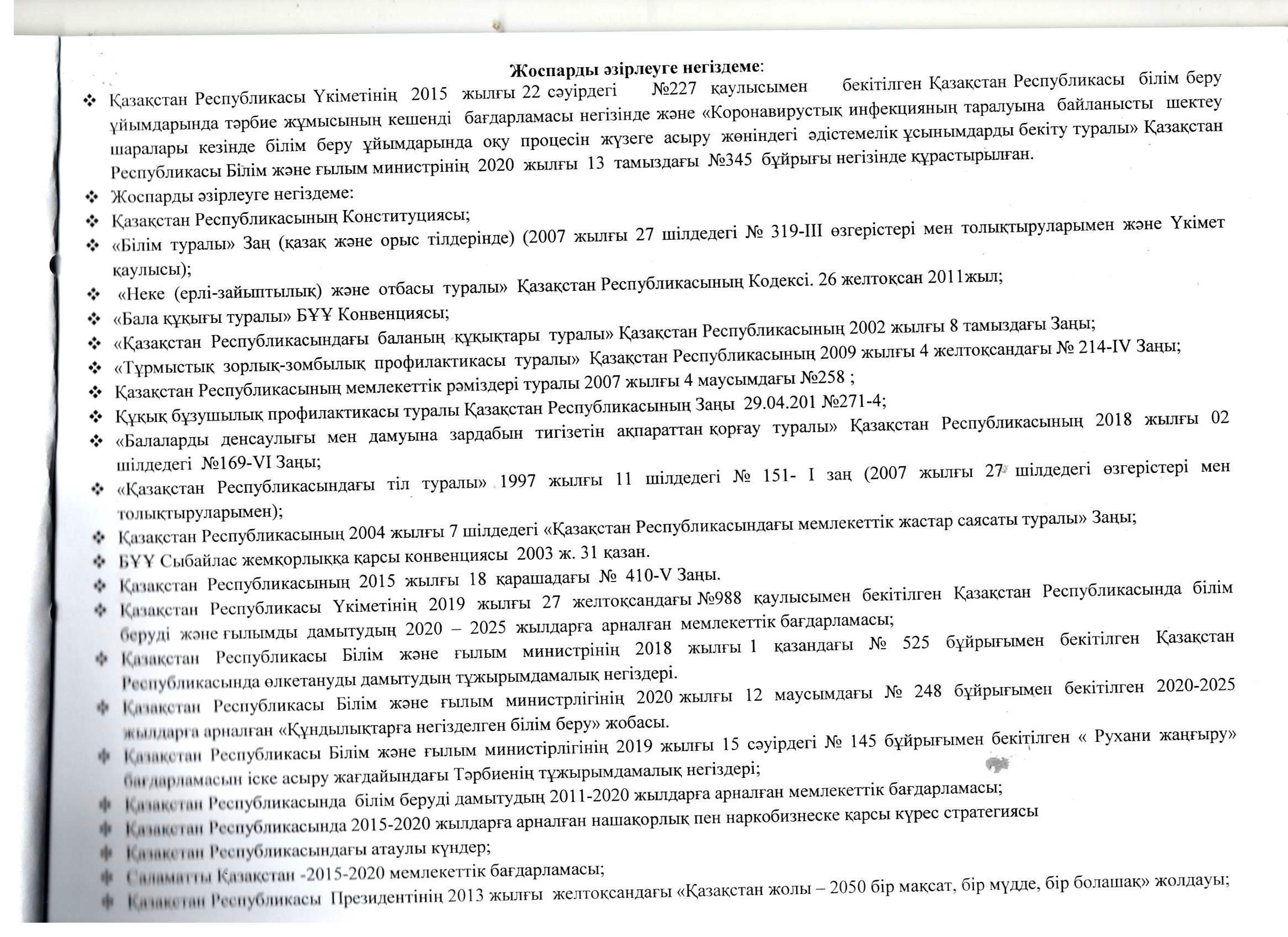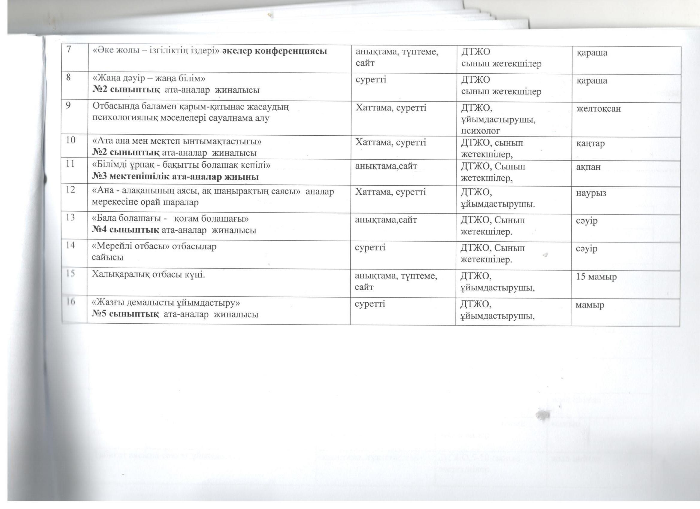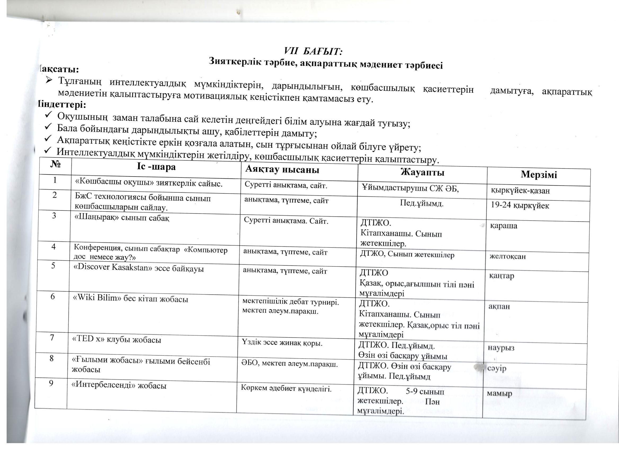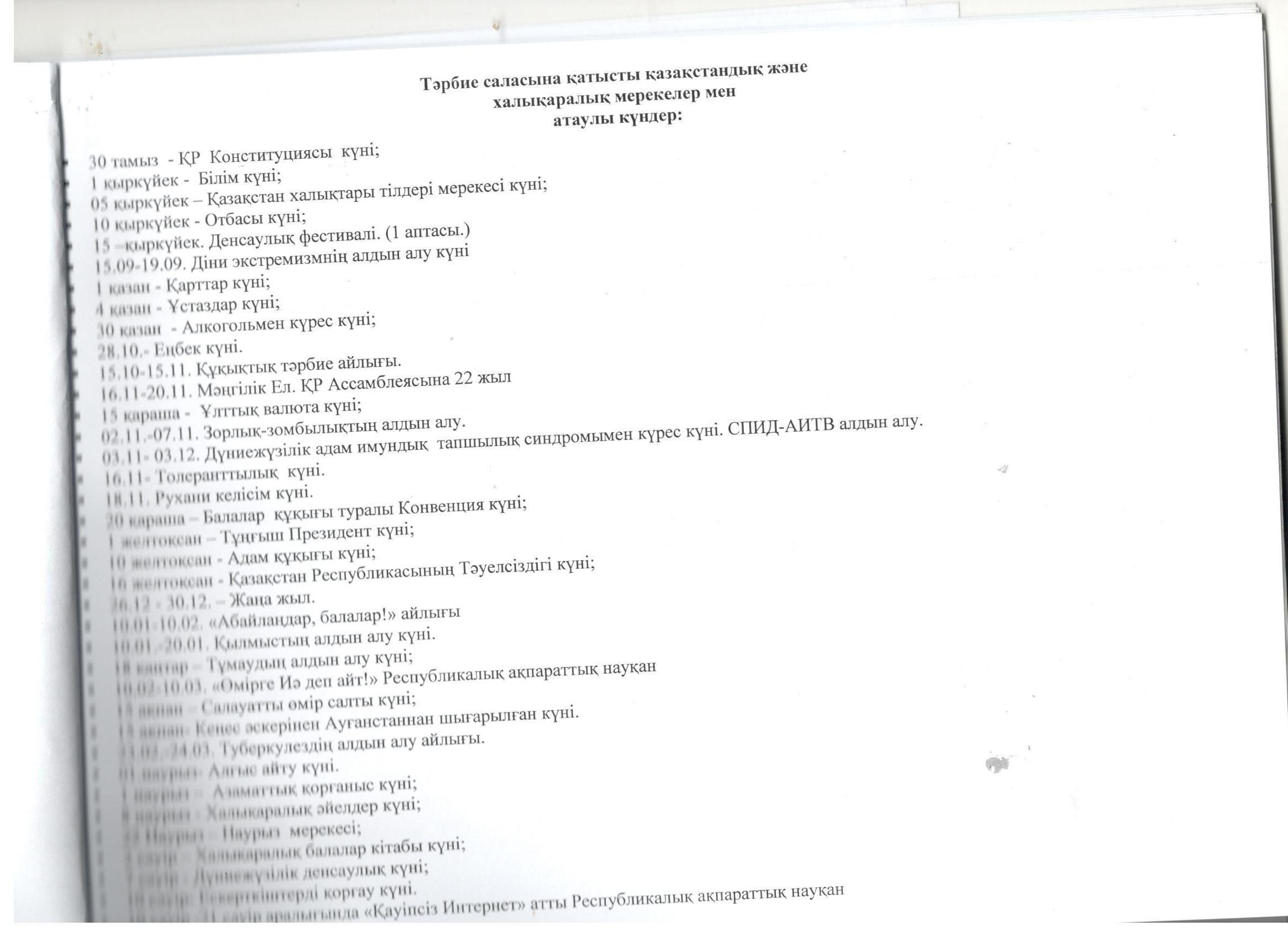 2020-2021 оқу жылы Тәрбие жоспары » Ыбырай Алтынсарин атындағы орта мектебі